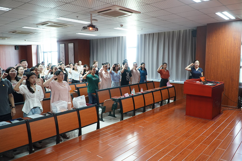 活动在国歌声中拉开序幕。首先,在院党委副书记王倩老师的带领下,全体学生党员重温了入党誓词。八十字的入党誓词,是一份政治誓言,是一份忠诚承诺,是一份责任担当,是全体共产党员共同的行为准则。