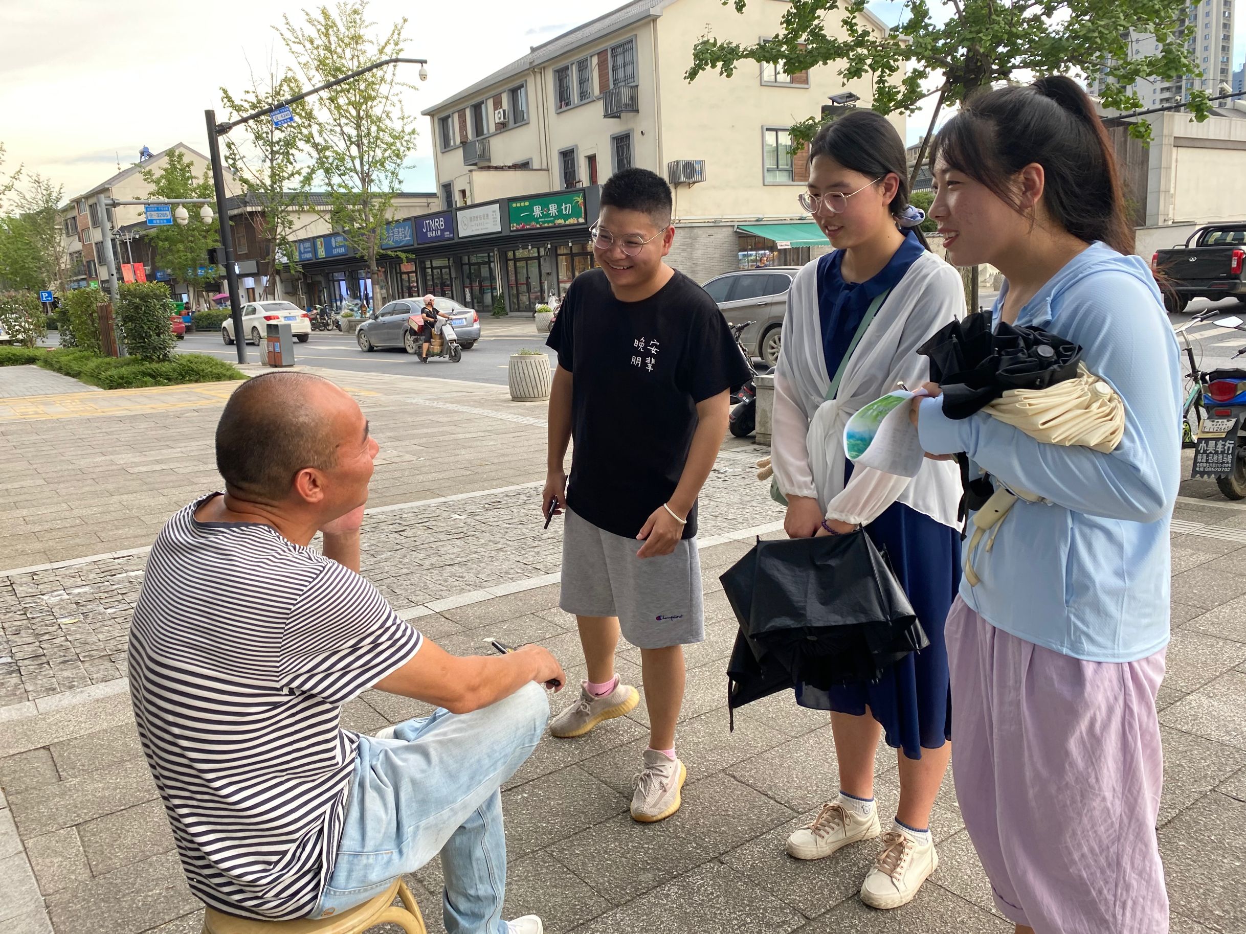 2021年7月7日,无码影片 垃圾分类社会实践小队四位成员前往仓前街道梦想小镇进行有关垃圾分类的采访和调查。