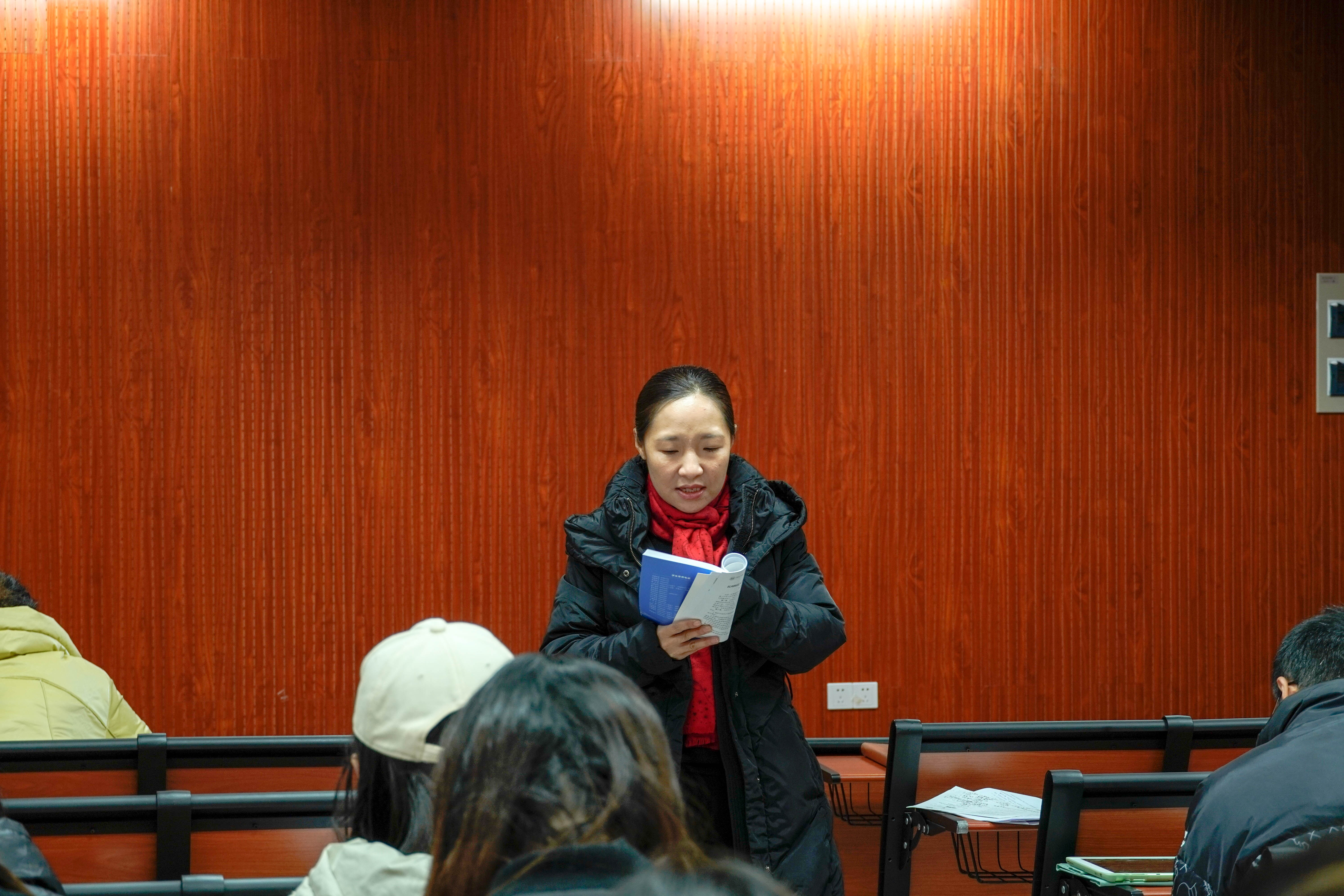 王倩书记从三方面发表讲话。首先,王倩书记再次强调诚信考试的问题,为同学们特别介绍了2019年新修订的违纪处分条例中的两点,一是学位授予工作细则,二是违纪处分规定。她期望大家不要触碰作弊高压线,不在体测中出现替考行为,做到诚实守信,公平竞争。其次,她叮嘱同学们要注意三方面的安全即意识形态、寝室用电和假期安全。最后,王倩书记向同学们提出在寒假期间仍然不放松学习的要求,并指出同学们要提早给自己的寒假做计划和打算,争取让寒假过得更有意义,有更大的收获。