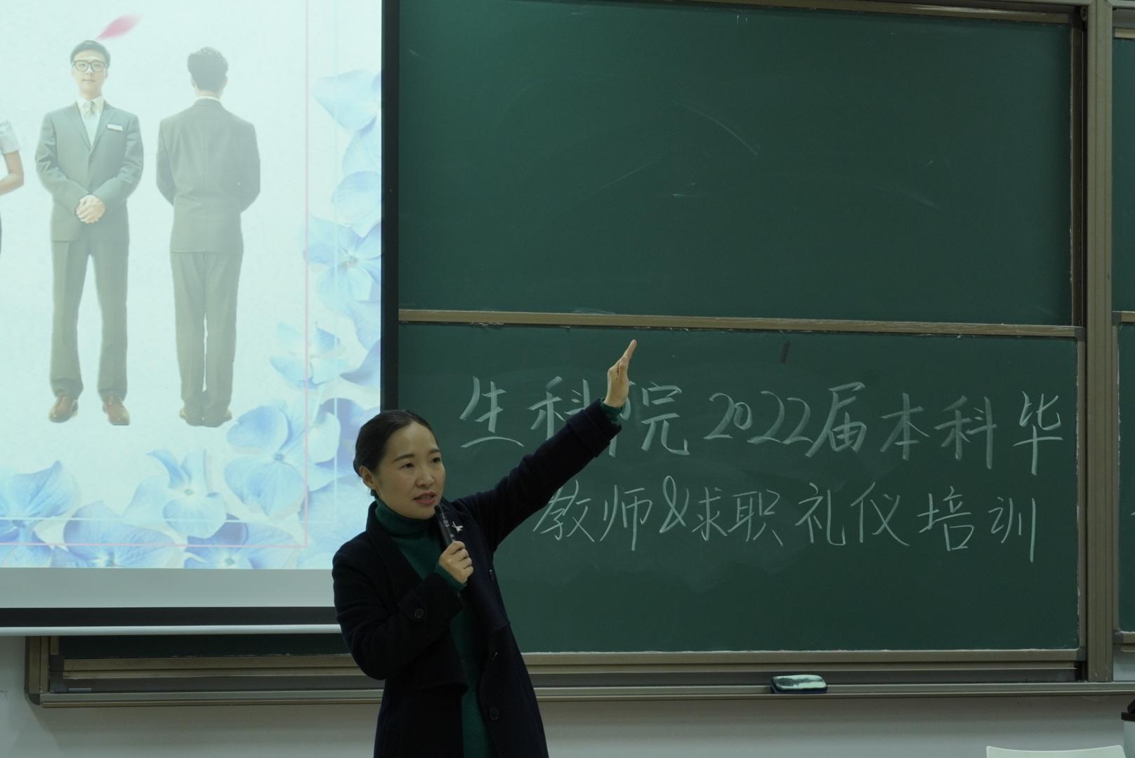 随着2022届本科生毕业相关工作拉开序幕,在教师求职、考研复试等众多面试中,学生的行为举止都是面试官们关注的焦点。为了提高学生们的礼仪水平,掌握礼仪基本知识,无码影片 开展的2022届本科毕业生教师&求职礼仪培训课于2022年1月5日18:00在慎园1号楼202顺利开展,本次培训课的主讲老师为我院党委副书记王倩老师。