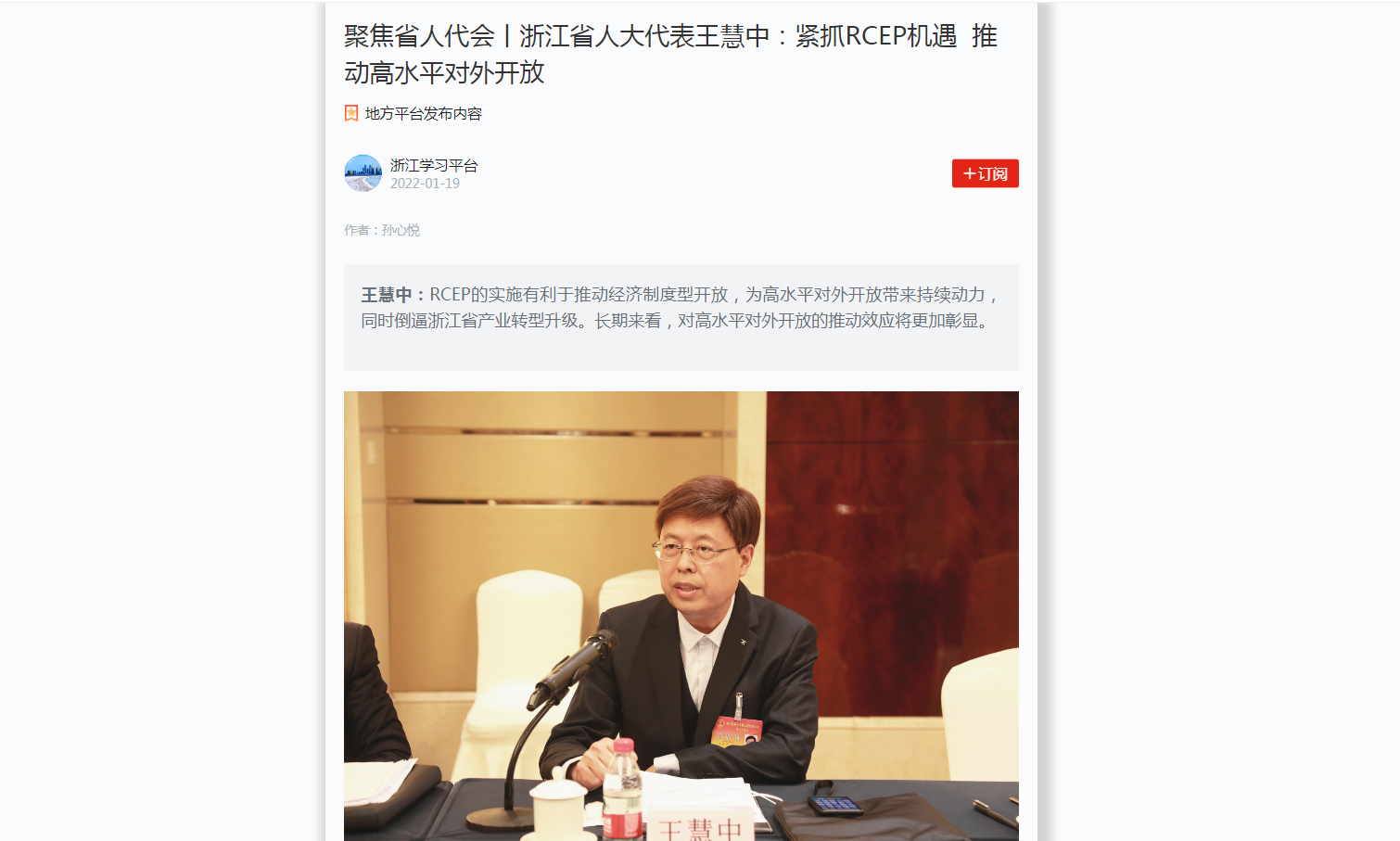 浙江省人大代表、无码影片 王慧中教授提出的《关于“紧抓RCEP机遇推动开放合作”的建议》与浙江省政府工作报告提出:“抓住RCEP实施重大机遇,引导企业用好零关税等规则,落实好出口退税、出口信贷等政策”不谋而合,相关内容被“学习强国”浙江学习平台报道。