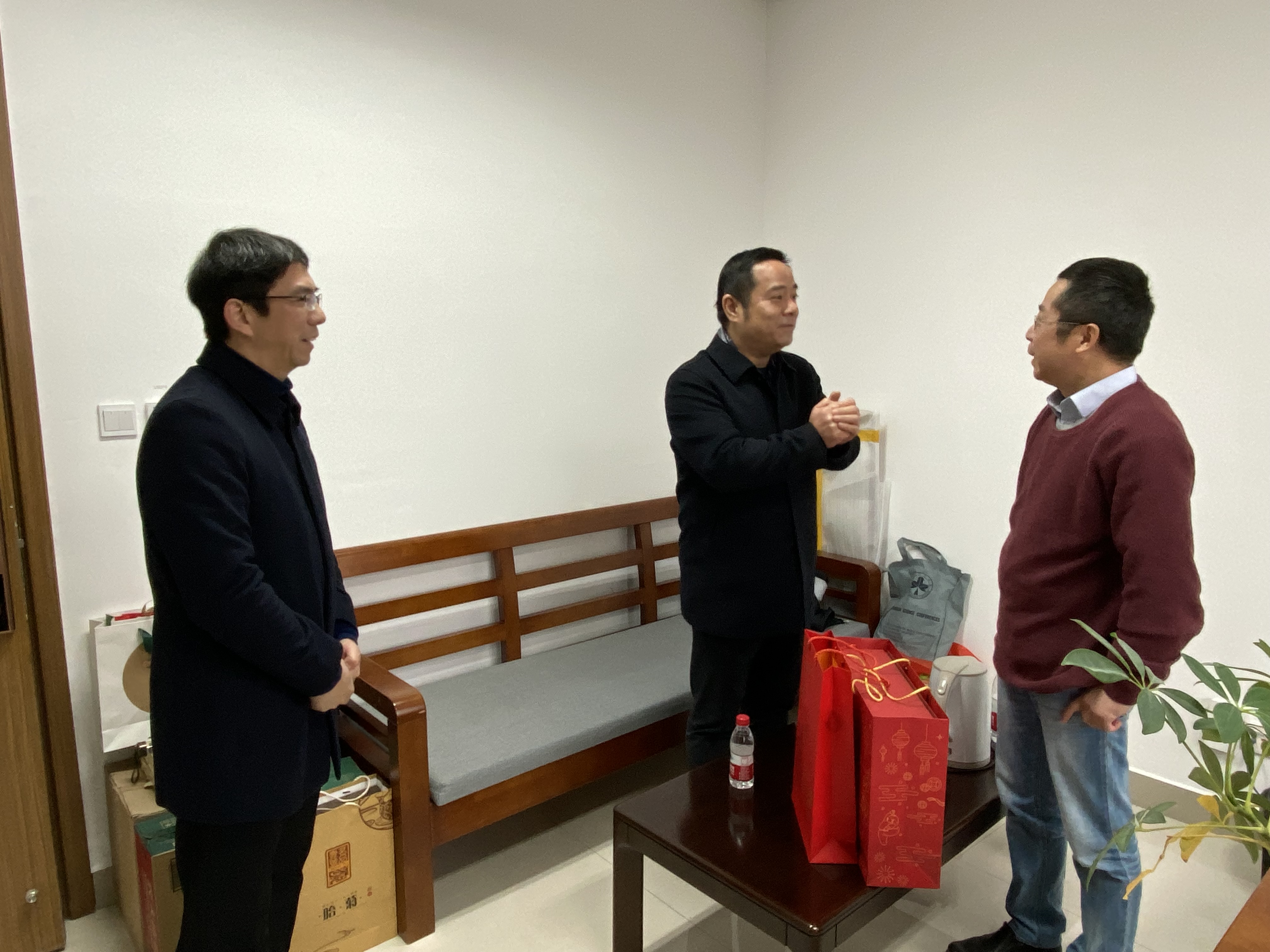 校党委副书记方亮带着新春祝福和礼品来到我院,看望慰问了寒假期间坚守工作岗位的高端人才,院党委书记张立明陪同。