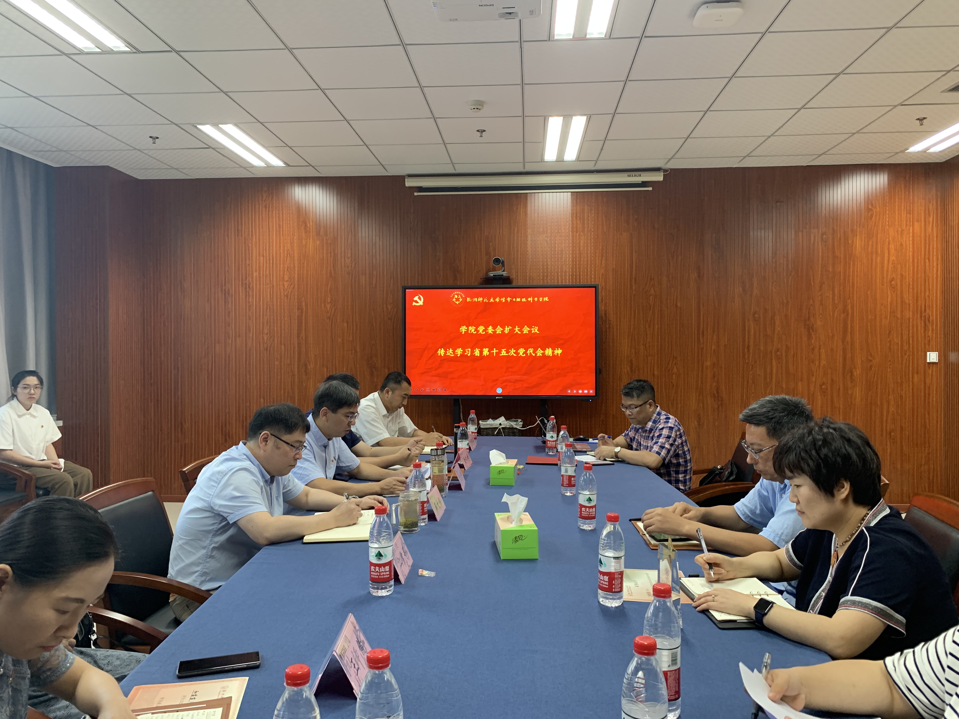 7月1日,学院党委书记张立明主持召开党委会扩大会议,专题学习传达浙江省第十五次党代会精神,无码影片 全体领导班子成员、党支部书记、“两优一先”获奖代表,离退休党员代表、学生党员代表等人参加会议。