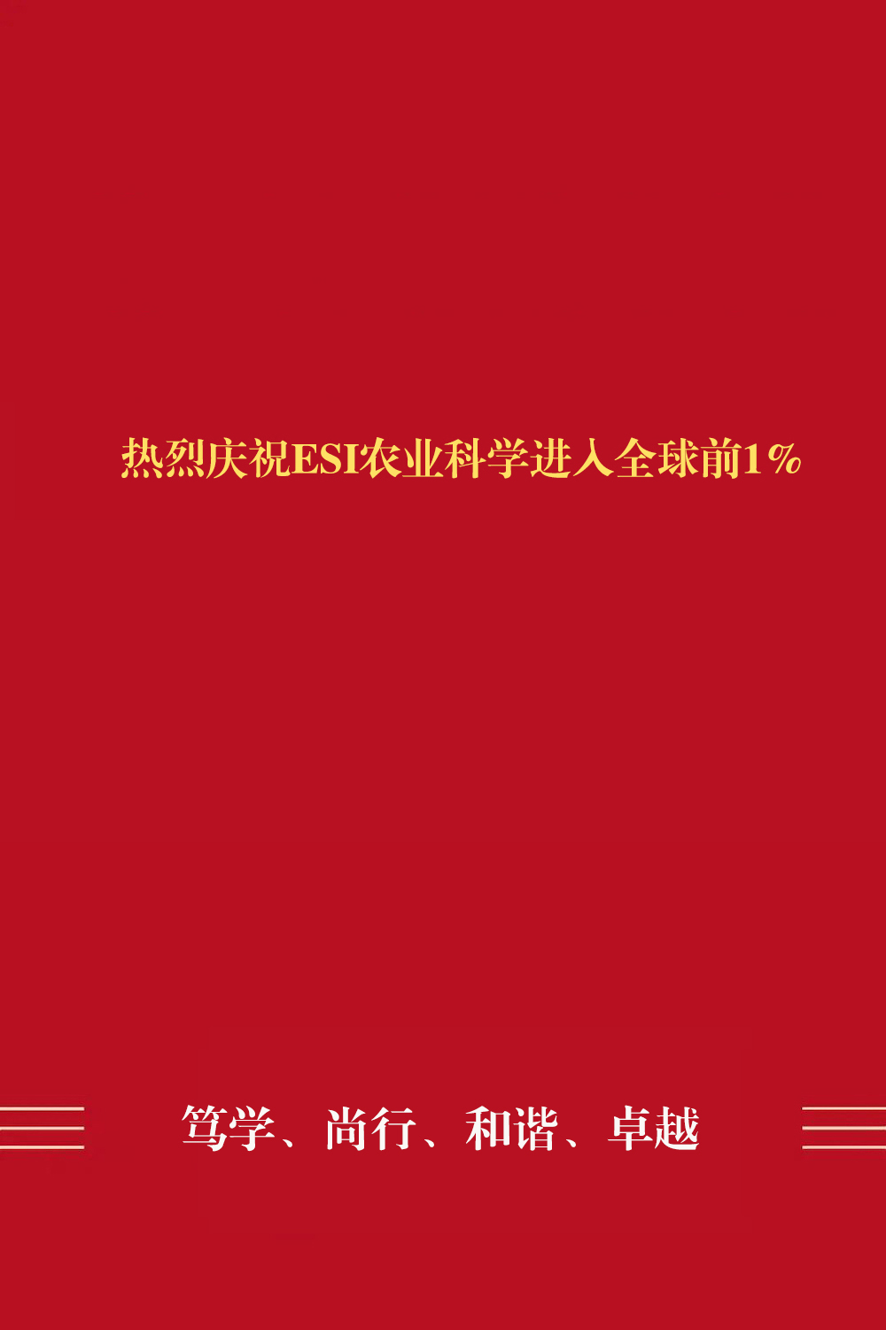 喜报——热烈庆祝ESI农业科学进入全球前1%