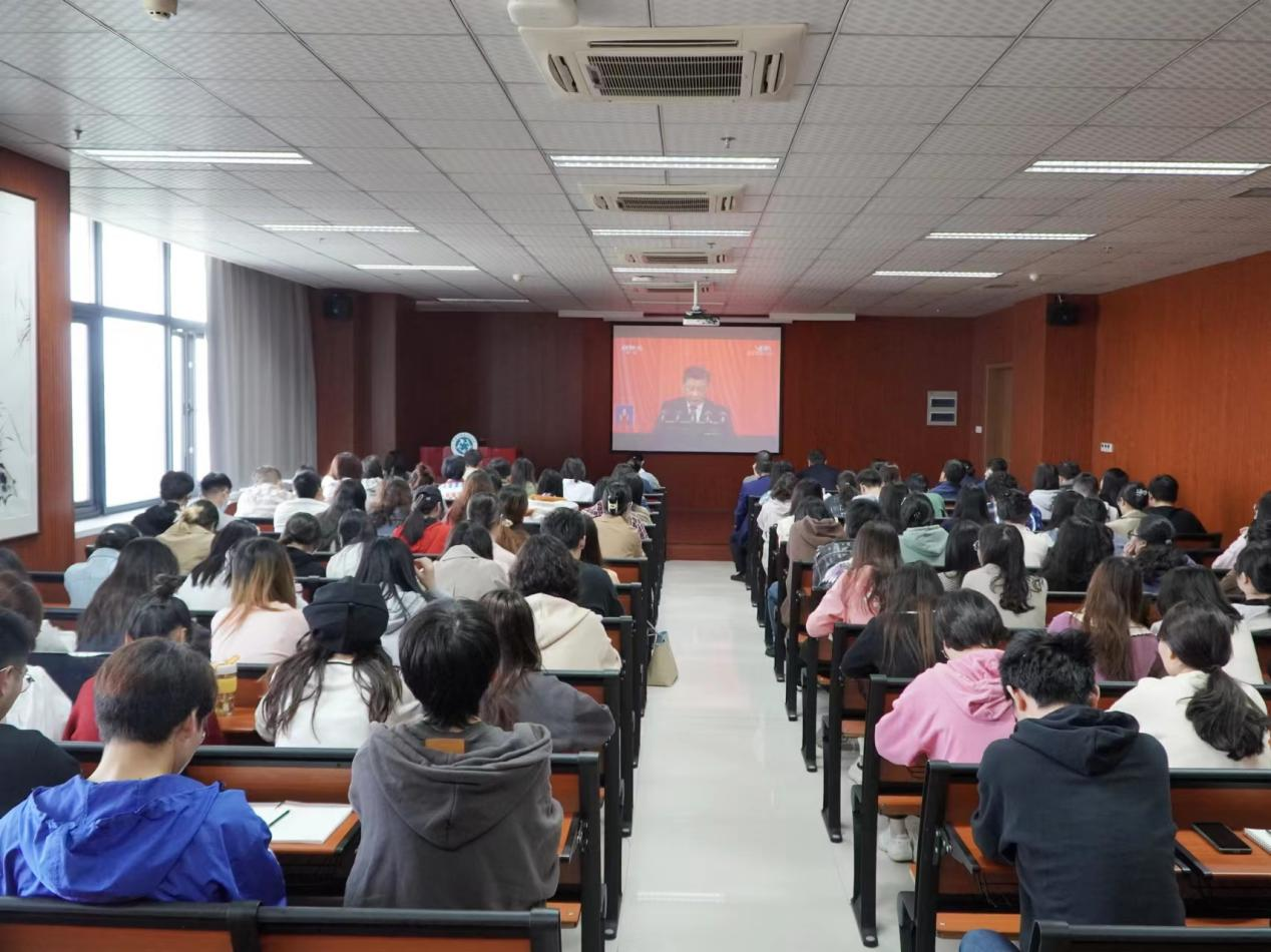 无码影片 在仓前校区慎园15号楼309报告厅设立集中观看主会场,在仓前校区智慧教室以及下沙校区教学楼多个教室设置学生分会场。