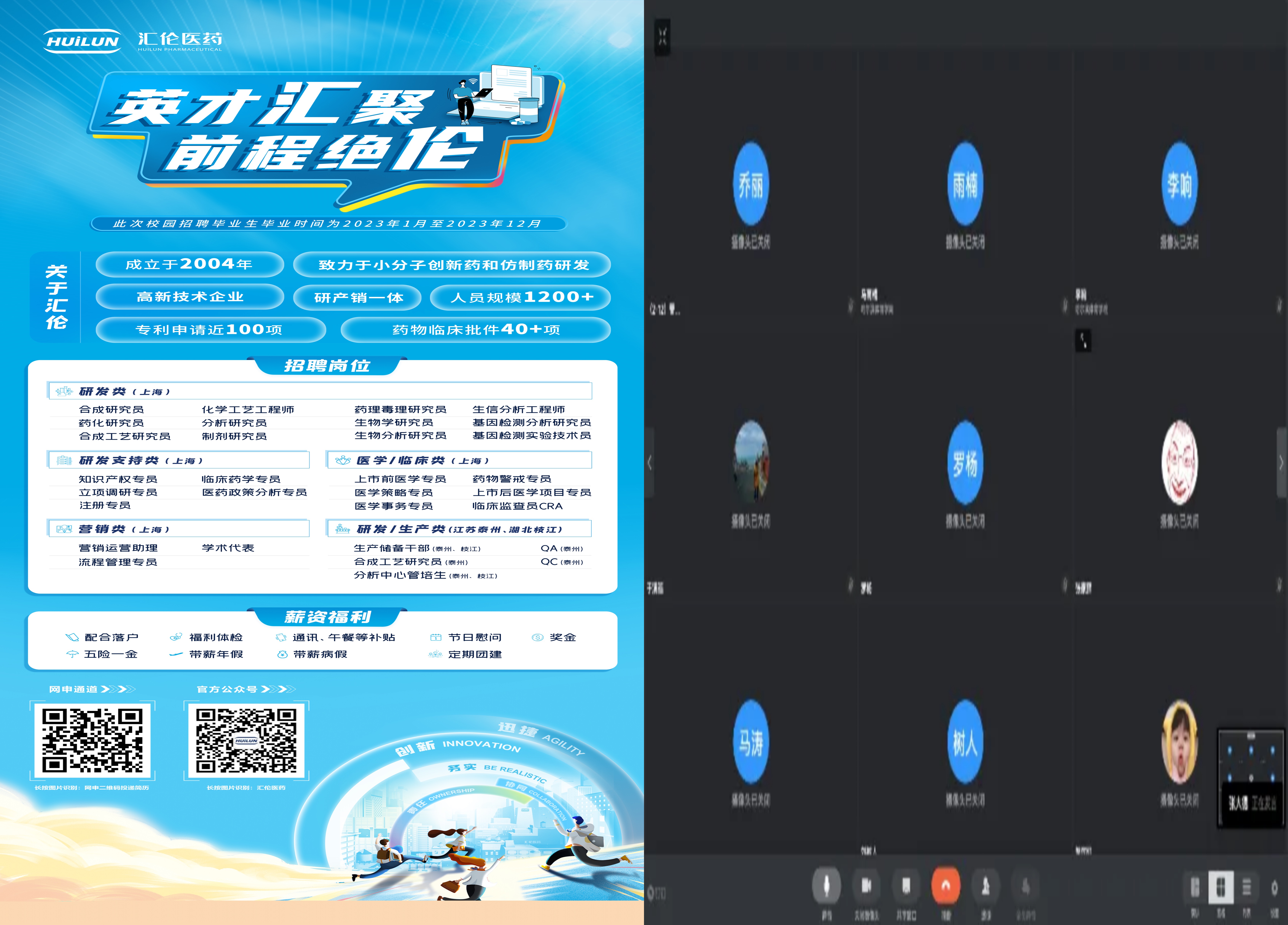 为更好了解当前的就业形势,对就业方向和未来规划有更深刻的认识,2022年10月19日,无码影片 组织开展了汇伦医药线上宣讲招聘会。