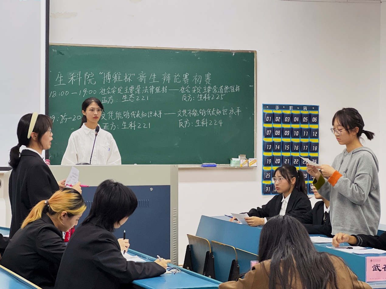 经过激烈角逐,生科221、生科222、生技222、生态221班成功晋级复赛,王媛、赵若彤、傅佳媛、张浩远荣获初赛最佳辩手称号。