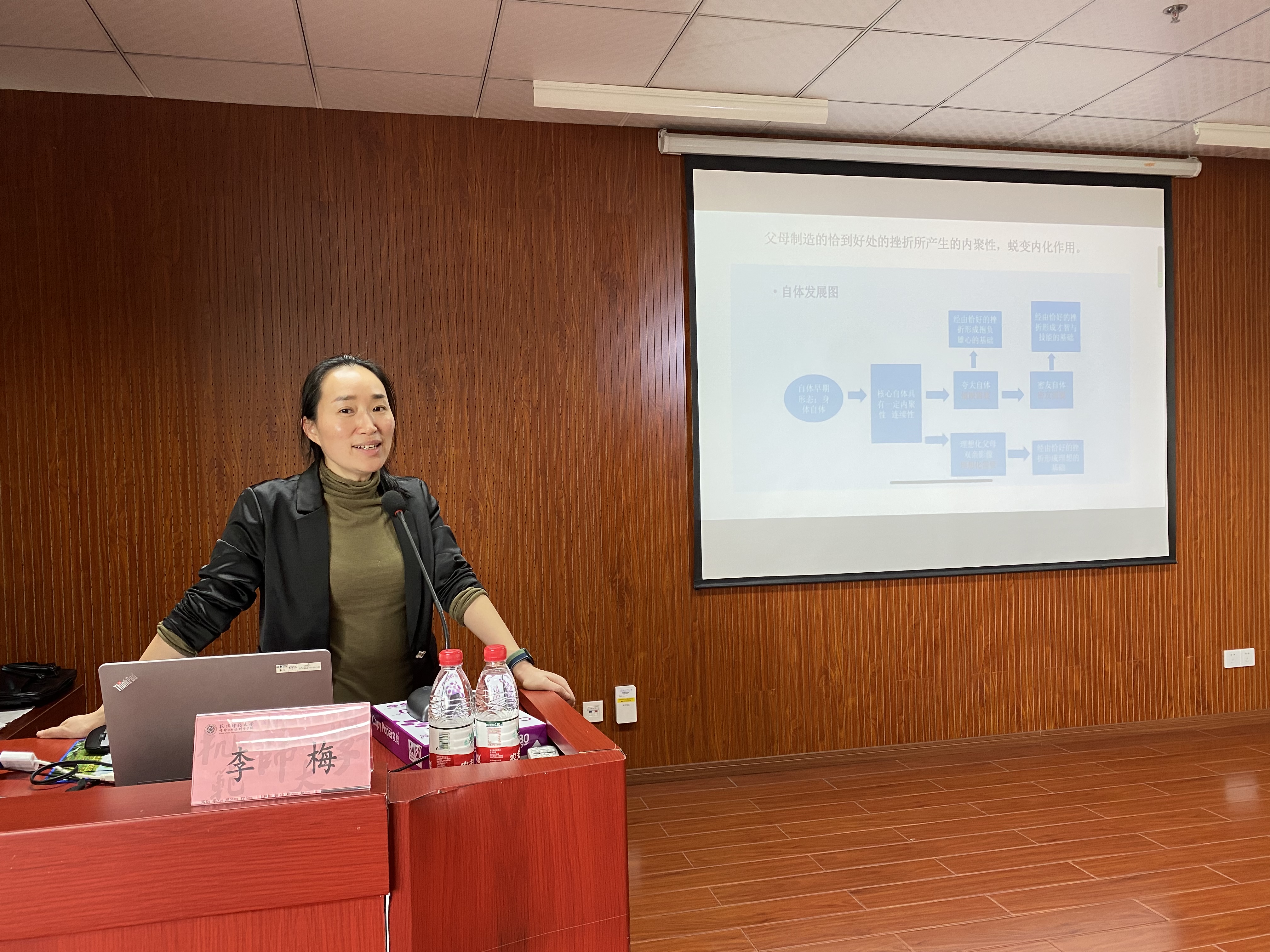 首先,校心理健康教育与咨询中心主任李梅作“如何处理学生心理问题、家庭亲子关系”的专题讲座。讲座根据征集到的问题进行了针对性的分享,通过案例介绍,生动分析导师和学生关系,使导师更加清晰了解学生的各种表现;另外也讲解了如何处理家庭亲子关系,通过生动案例解释孩子的种种表现。本次讲座通过了解了学生的心理、子女的心理,对我们的工作和生活起到了指导性作用。