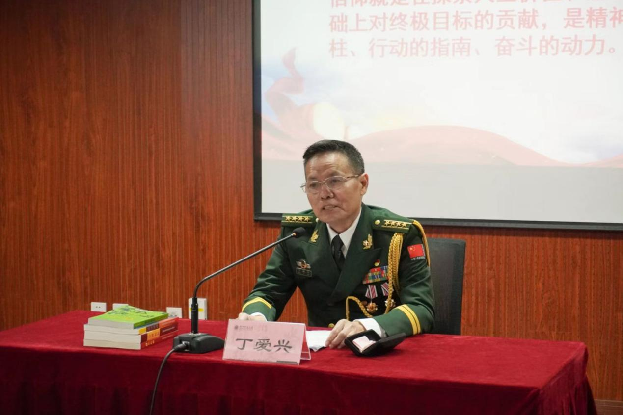 丁爱兴结合自身军旅人生经历和习近平总书记在党的二十大报告中对青年人的期盼,强调我们的信仰就是对社会主义、对马克思主义坚定不移的信仰和信心,共产主义是永恒的信仰,并指出青年要牢记习近平总书记的期盼和教诲,以信仰的力量鞭策自己前行。