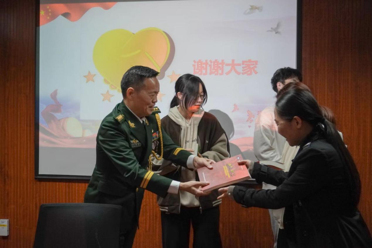 讲座最后,现场同学们积极提问,就青年应该做什么、怎么做,如何传承好红色基因等方面向丁爱兴书记请教。丁爱兴书记耐心解答同学们的疑惑,并向学生代表赠送了红色书籍,希望同学们能够好好领悟红色精神,认真学习党的精神内涵。