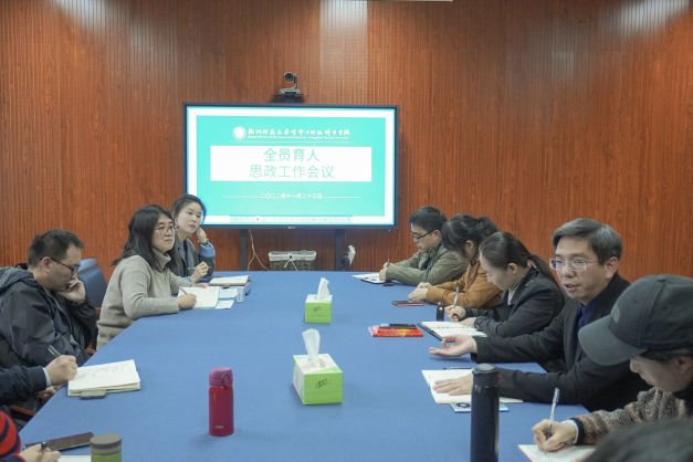 11月23日下午,无码影片 2022年度全员育人思政工作会议在慎园15号楼313会议室举行。院党委书记张立明、党委副书记王倩及全体班主任和辅导员参加。