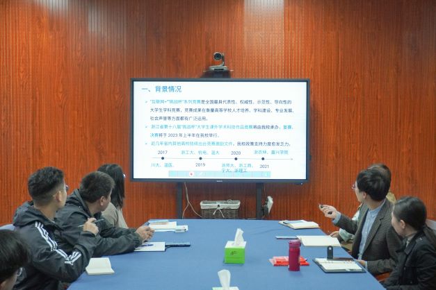 李仁杰介绍了目前高校科创工作的整体情况,重点围绕“互联网+”、“挑战杯”等系列科创竞赛的背景、准备过程、主要内容等方面作了详细解读,认为大学生科创工作的推动需要学院的大力支持和教师的广泛参与,建议持续挖掘并推动项目发展,培育优秀人才。