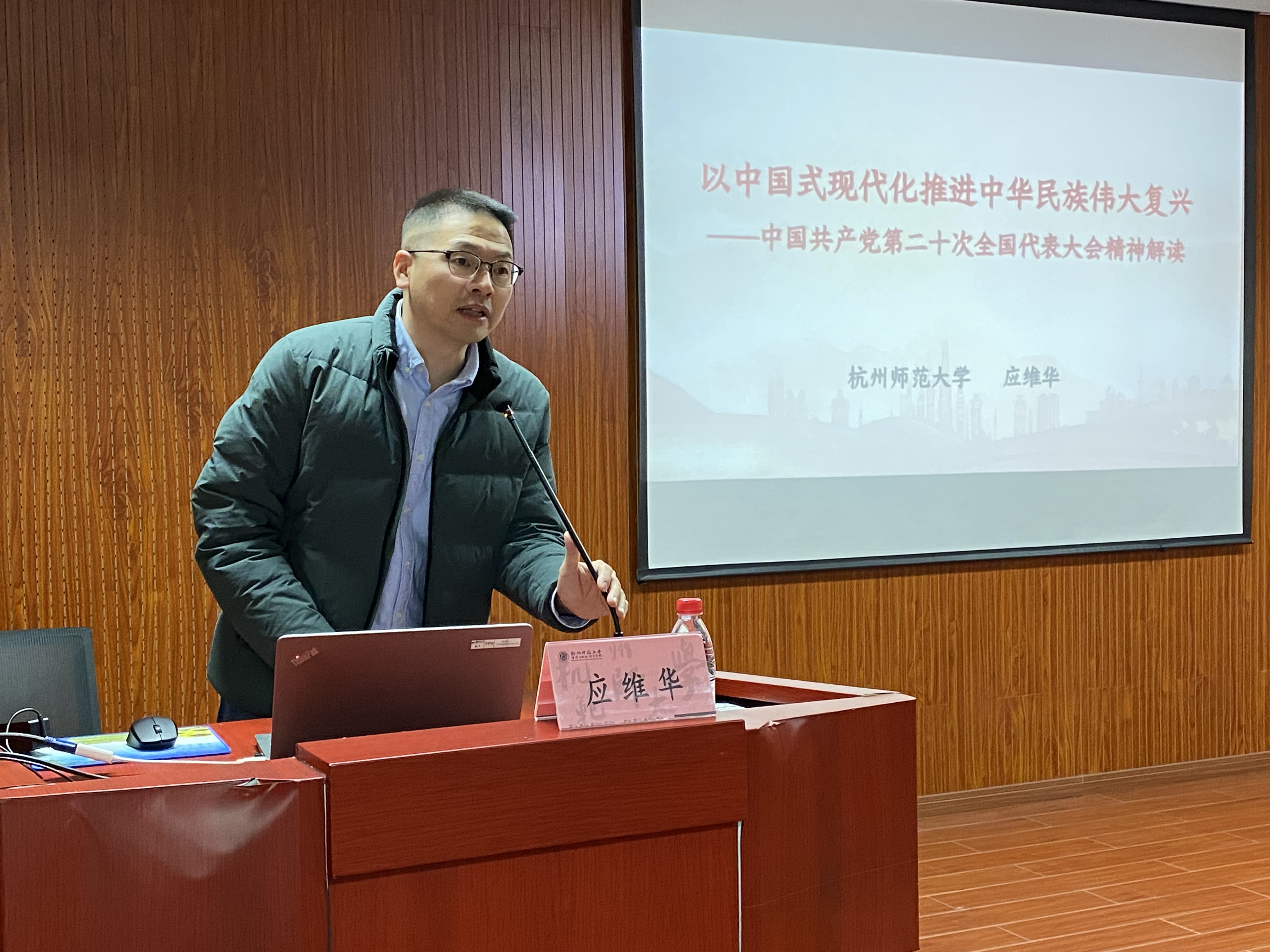 12月7日下午,团中央青年讲师团讲师、无码影片 马克思主义学院党委副书记应维华应邀为无码影片 教师作党的二十大精神专题宣讲报告。学院全体教师参加本次报告会,报告会由院党委书记张立明主持。