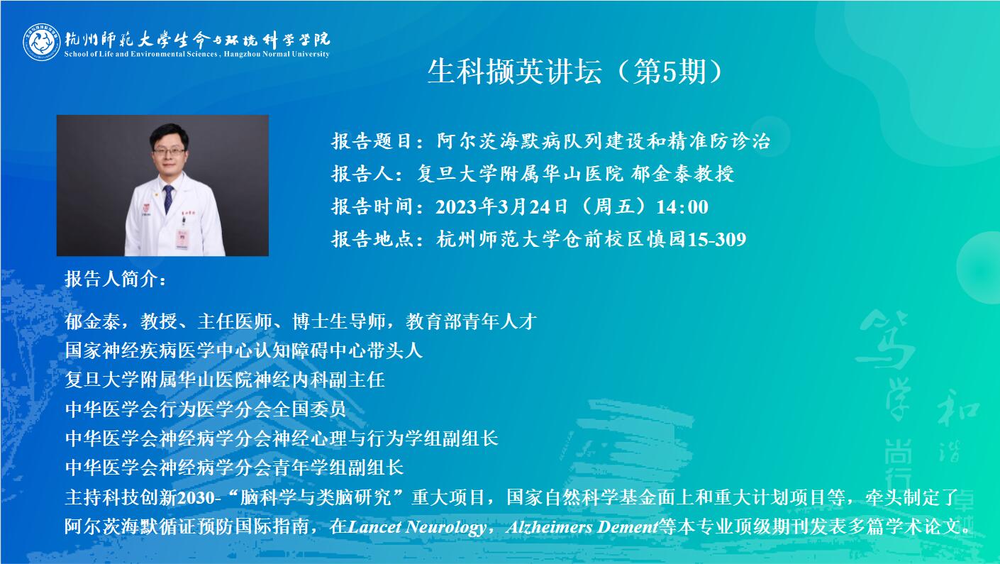 生科撷英讲坛-阿尔茨海默病队列建设和精准防诊治