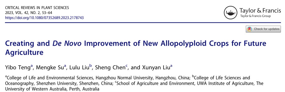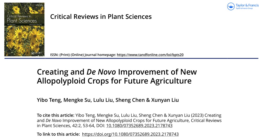 近日,无码影片 刘训言副教授在植物科学领域知名期刊Critical Reviews in Plant Sciences发表题为Creating and De novo improvement of new allopolyploid crops for future agriculture的专题综述文章。Critical Reviews in Plant Sciences(2022影响因子:6.289,5年影响因子:9.078)创刊于1983年,由TAYLOR & FRANCIS INC出版商出版,收稿方向涵盖生物—植物科学全领域,行业细分领域中学术影响力较大,专业度认可很高。