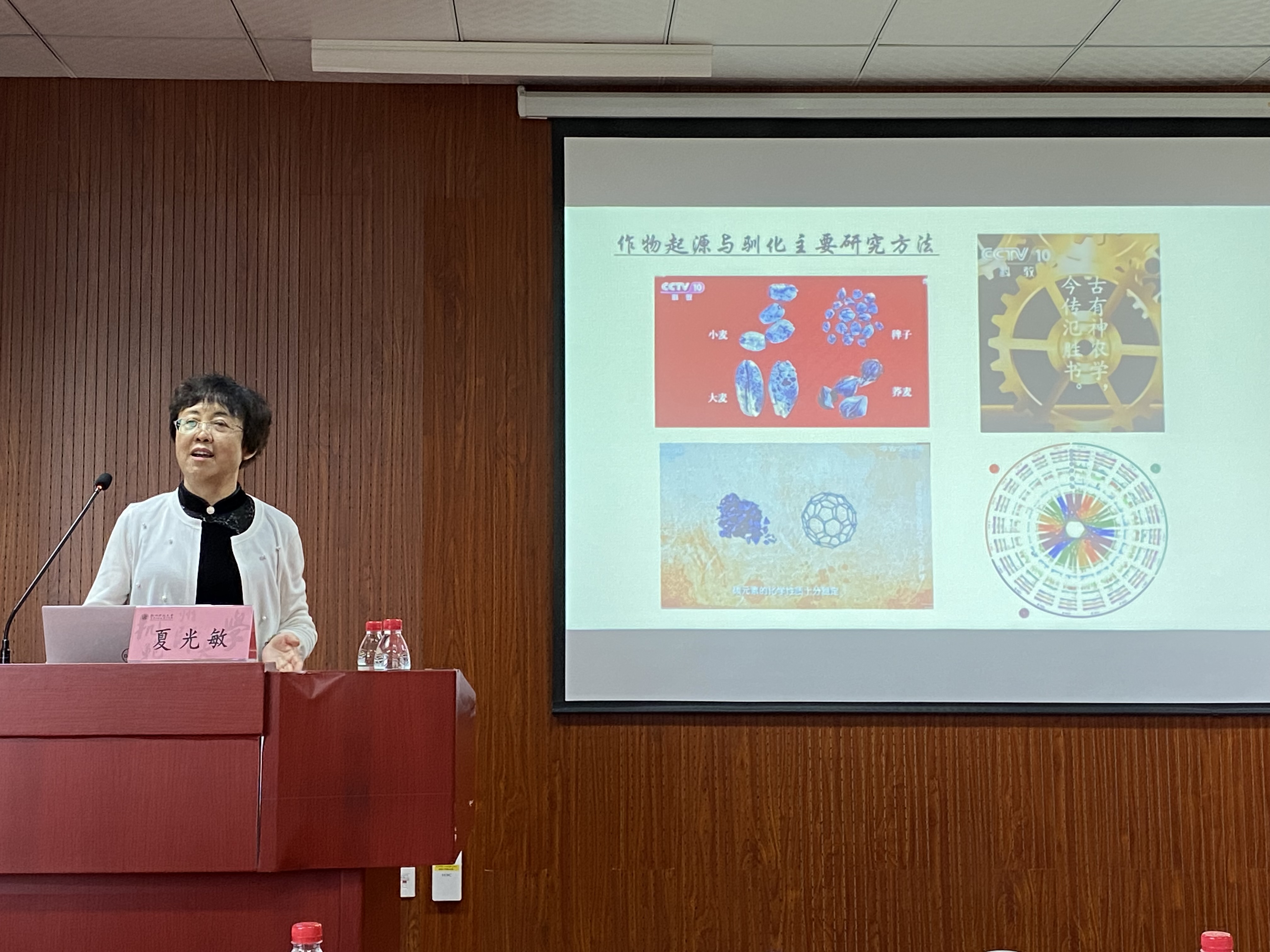 中国植物生理与分子生物学学会副理事长、植物生物学女科学家分会会长、全球顶尖2%科学家、山东大学夏光敏教授介绍了中国植物生物学会女科学家分会概况,以及校园行活动的开展情况与现实意义。并做了《作物驯化与农耕文明 》,报告讲述了水稻、小麦等作物的演化与驯化、作物对人类文明的贡献与中国文明等,让大家从历史和人文的角度重新认识作物。
