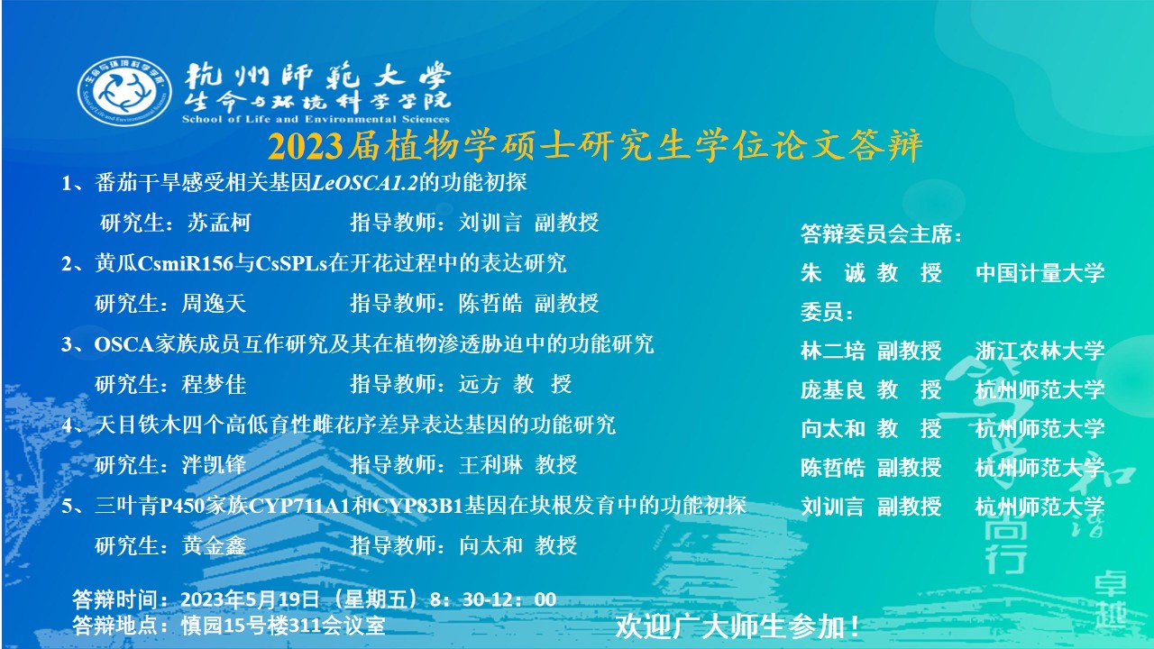 【2023届论文答辩】2023届植物学硕士研究生学位论文答辩安排