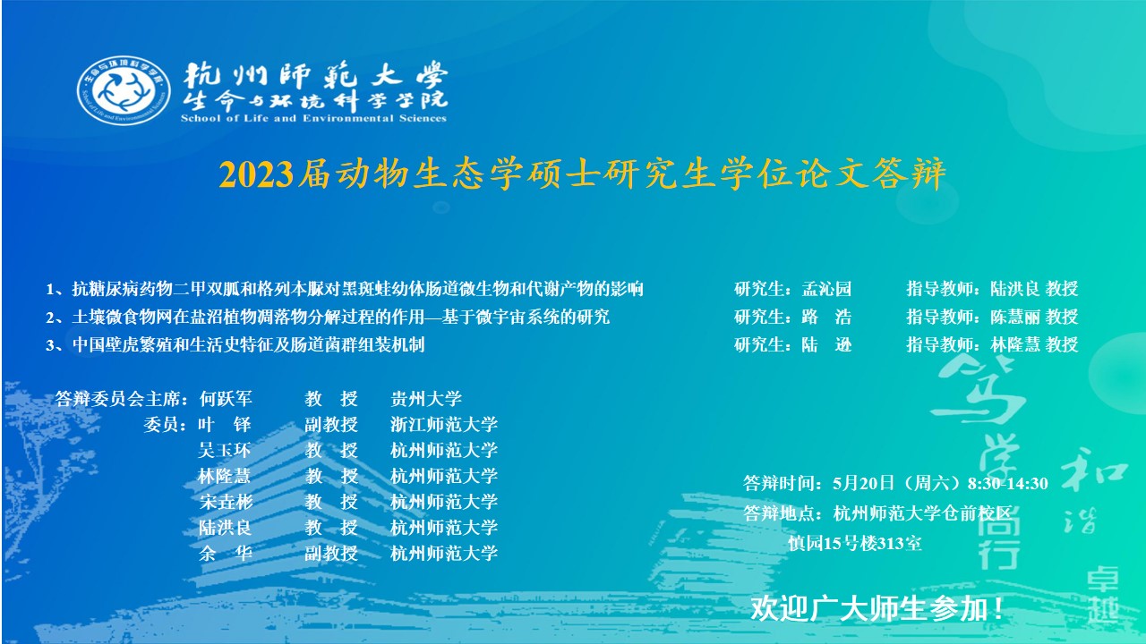 【2023届论文答辩】2023届动物生态学硕士研究生学位论文答辩安排
