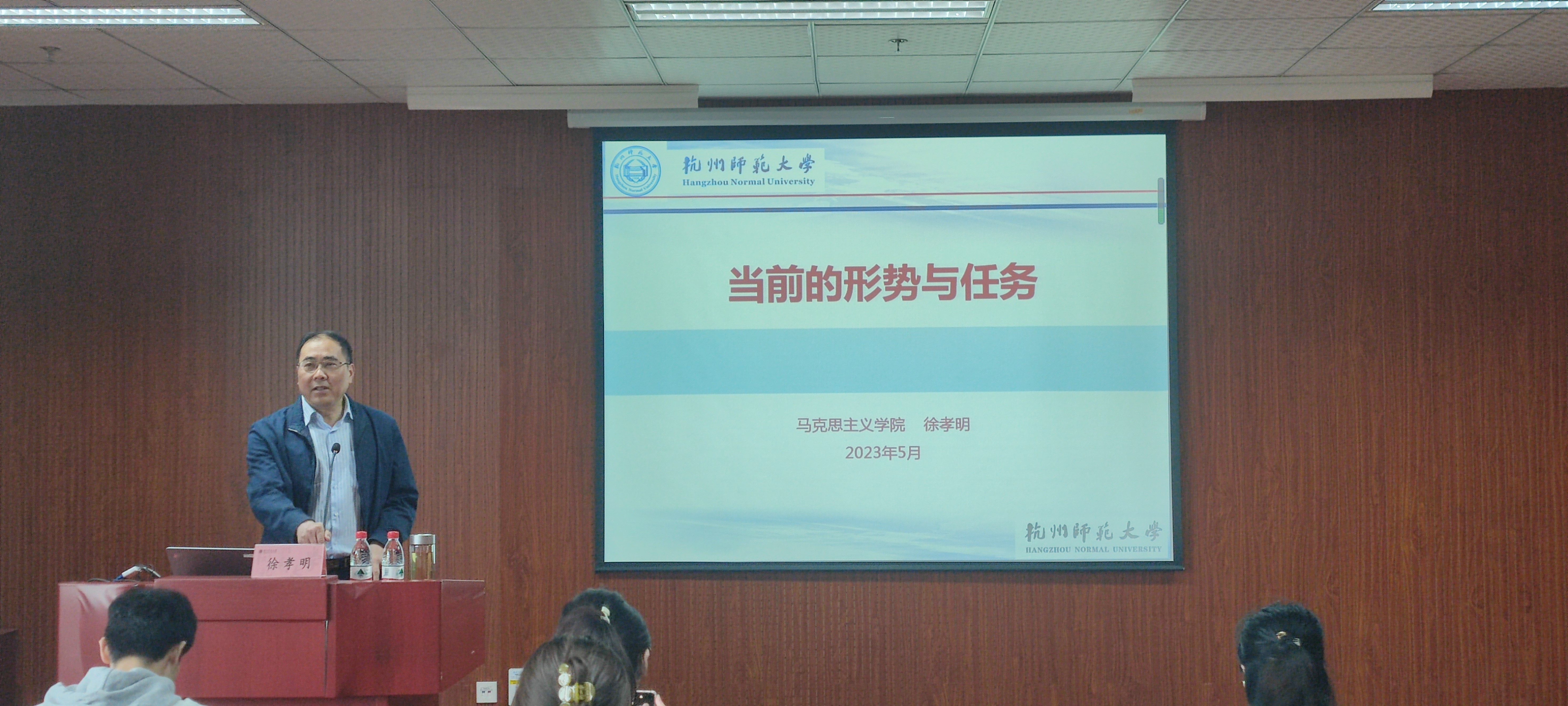徐孝明副教授结合“二十大”“两个大局”“两个百年”“未来五年”等关键词,深入讲解当前的国际政治局势、引导学员们领会把握全面建设社会主义现代化国家面临的形势与任务。