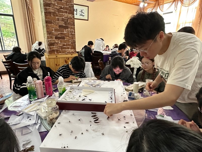 在动物学方面,同学们通过实践对部分软体动物、昆虫、两栖类、爬行类、鸟类等动物进行观察和采集,同学们熟练使用捕虫网、三角袋、毒瓶等工具,捕获到多种蛾、蝴蝶、金龟子等昆虫,再结合分类检索表和所学理论知识,进一步辨识和明晰了所制作标本的动物种类。成功地将所学的理论知识与具体的观察实践相结合,深入了解了生物多样性的现状。
