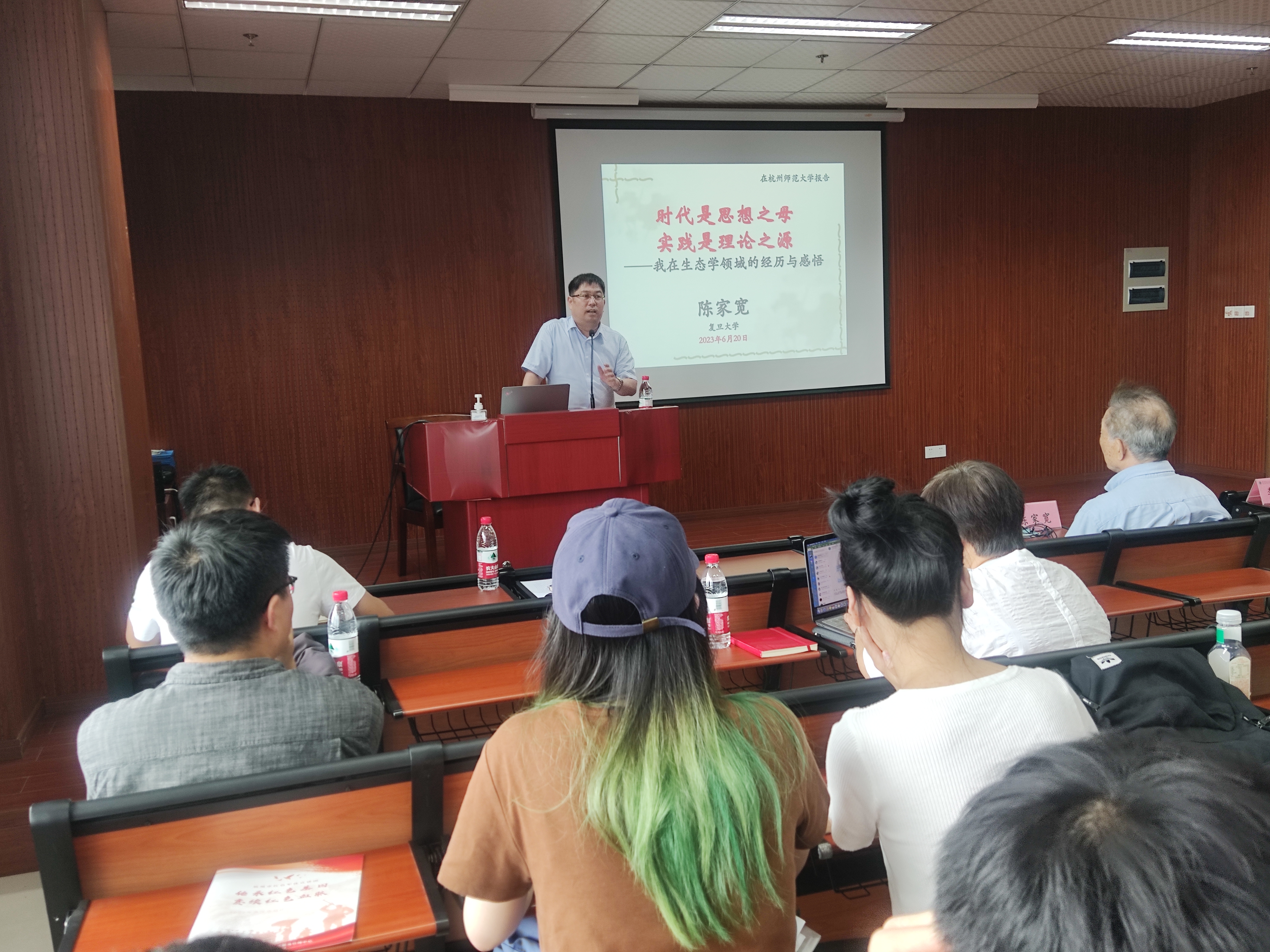 在报告中,陈家宽教授介绍了在生物多样性与自然保护、流域生态与长江大保护、大学教育和科技发展战略等方面的研究工作,通过自身40多年学习经验,向大家分享了一些独到的见解和感悟。首先,介绍其在长期科研考察中,以三峡生态巨变、长江源头与上游面临生态威胁等案例,开启一系列实践理论研究;其次,介绍了其生态文明理念、长江大保护战略等主要科研成果和影响力;第三,介绍了做上海生态之城建设的参与者、贡献者;第四,介绍了全球变化中任何一个变化都直接影响各圈层及整体性,根本上改变人与自然关系等;最后,勉励青年人,要善于聆听时代的声音,做到实践、理论与读书有机结合。