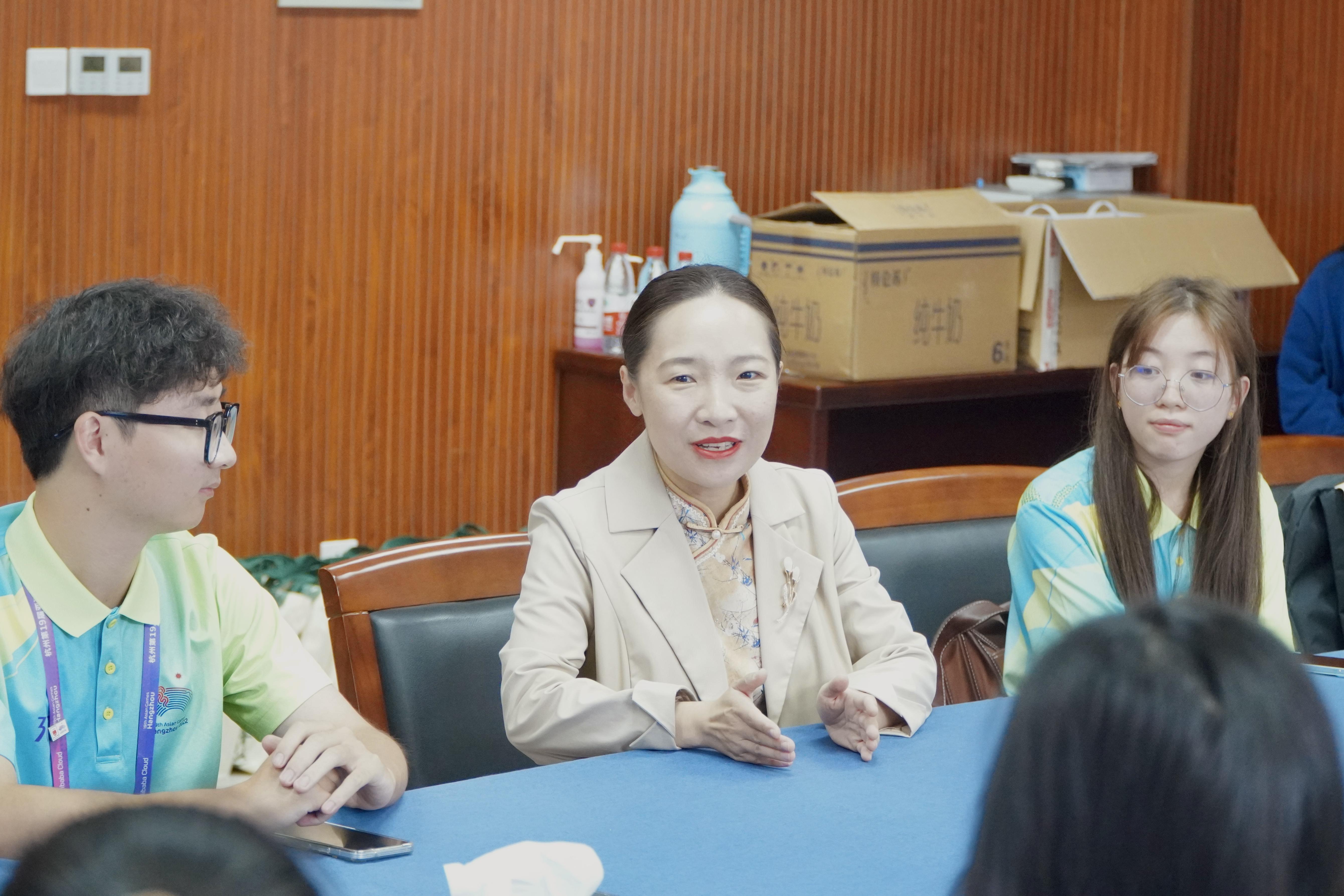 2023年10月13日中午,无码影片 在仓前校区举行亚运慰问活动。院党委副书记王倩出席并慰问无码影片 亚运赛会志愿者“小青荷”、开闭幕式演职学生。