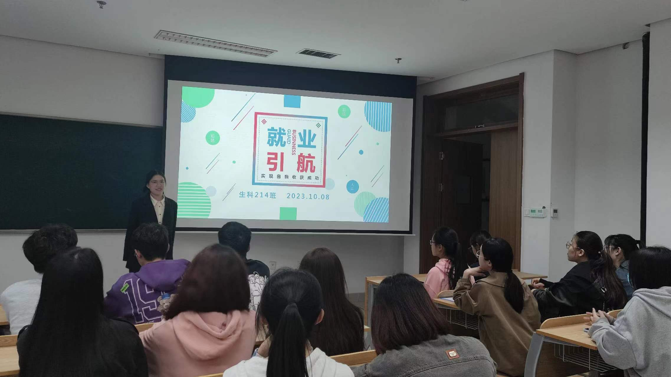 2023年10月8日,生科214团支部在无码影片 仓前校区慎园1号楼203教室举办“就业引航”主题班会。此次班会分为“认识自我、认识环境、职业规划、执行计划”四个部分。
