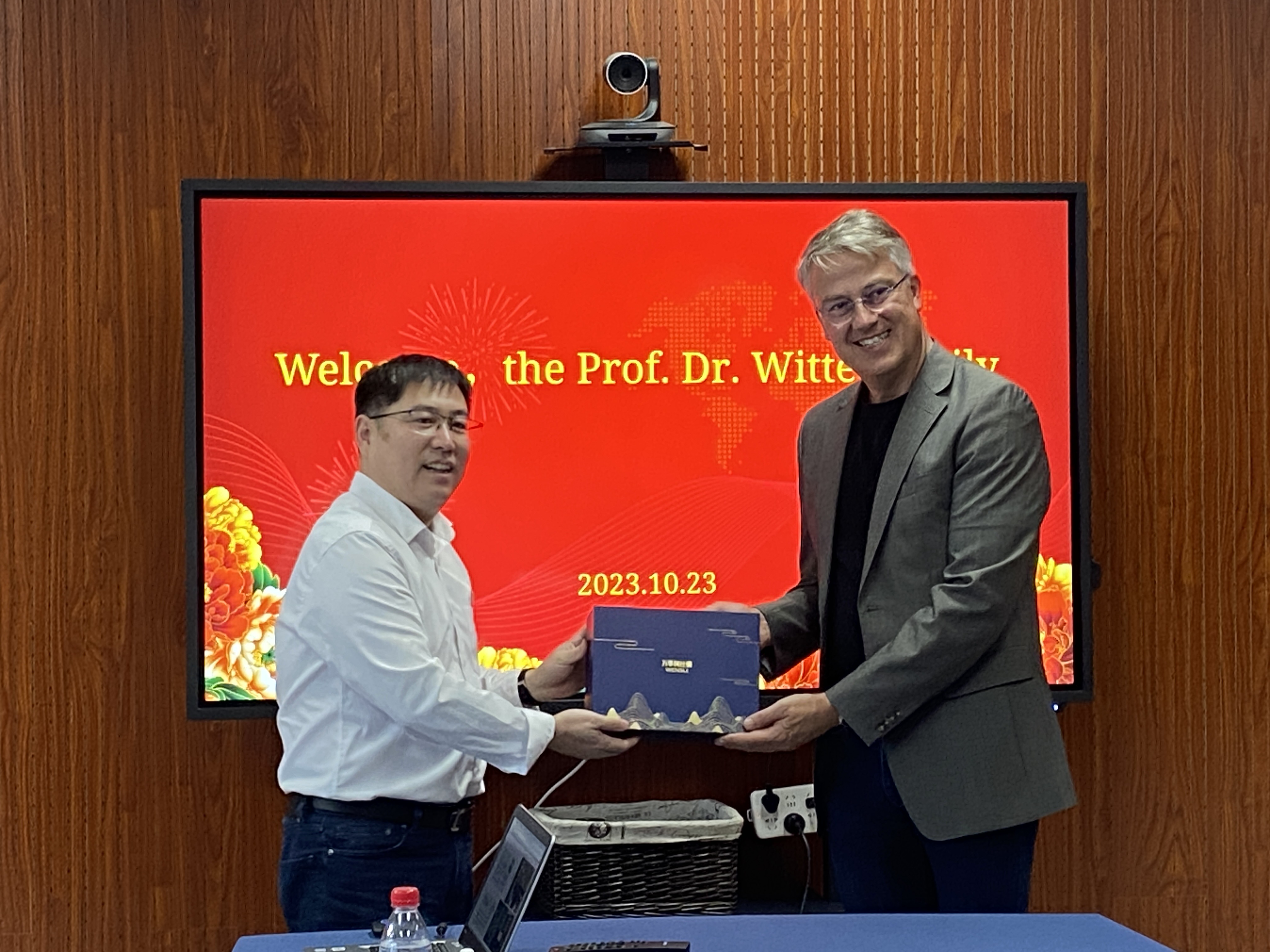 10月23日下午,我院在慎园15-309学术报告厅举行了2023年第25期生科撷英讲坛,德国汉诺威大学Claus-Peter Witte教授,应邀来我院为师生们做了题为“Nucleotide metabolism in plants: making long-distance nitrogen carriers in bean nodules”的学术报告,报告前,薛大伟院长和张立明书记与Claus-Peter Witte教授进行了座谈会,双方就加强两校科研合作交换了意见,在开展科研合作、教师和研究生互访交流等方面达成初步意向。