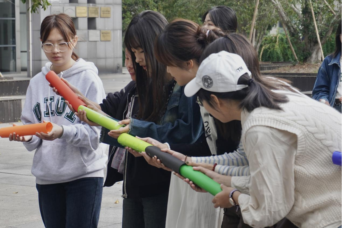 素质拓展活动在下沙校区教学区拉开为末。全体成员被分成若干小分队,按照既定路线环绕校区行进。为增强活动趣味性与互动性,途中设置了知识竞答、竞技套圈等任务关卡,帮助同学们打破隔阂,增强团队凝聚力。