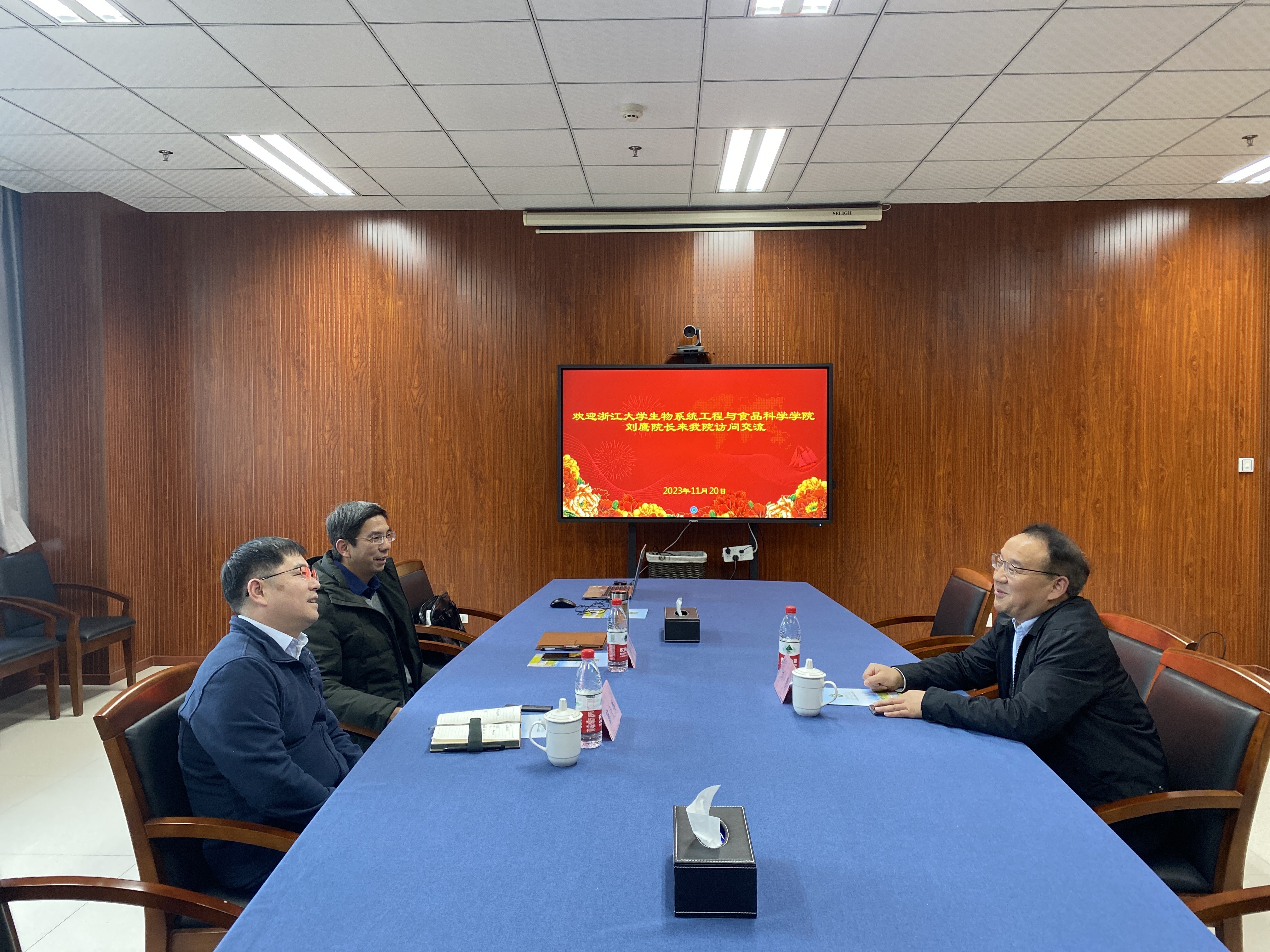 11月20日,浙江大学生物系统工程与食品科学学院刘鹰院长应邀来我院访问交流,薛大伟院长、张立明书记参加座谈。