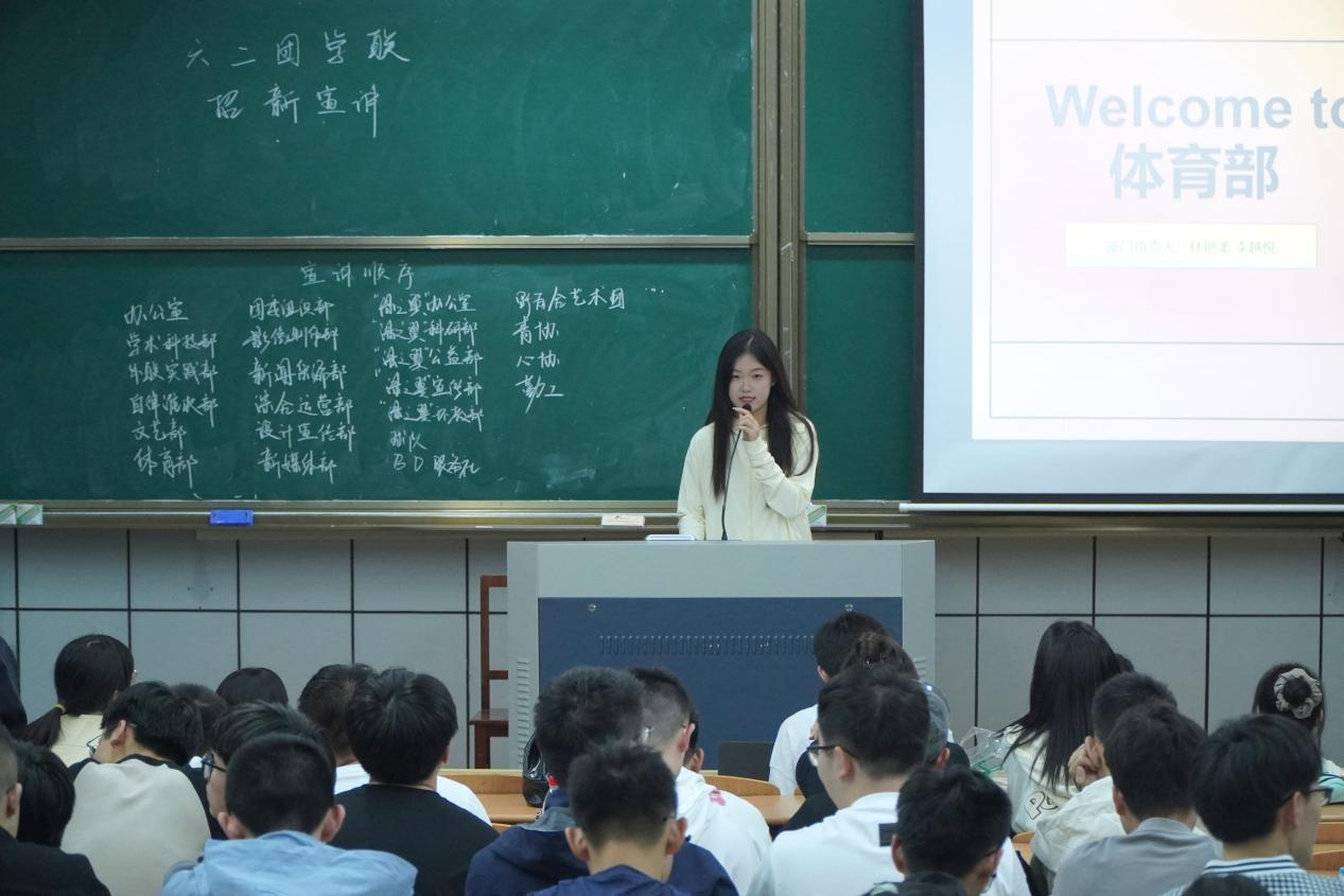 招新宣讲会伊始,团委组织部负责人邵琦、唐宇璇进行开场致辞并介绍了六二团学联整体架构。随后,各部门或组织负责人依次展开宣讲,对本组织或部门在六二团学联架构中的定位与具体职能进行了详尽介绍,并同新生们进行了互动交流。宣讲过程中,新生们热烈回应,会上气氛活跃。
