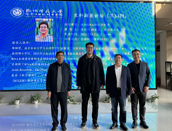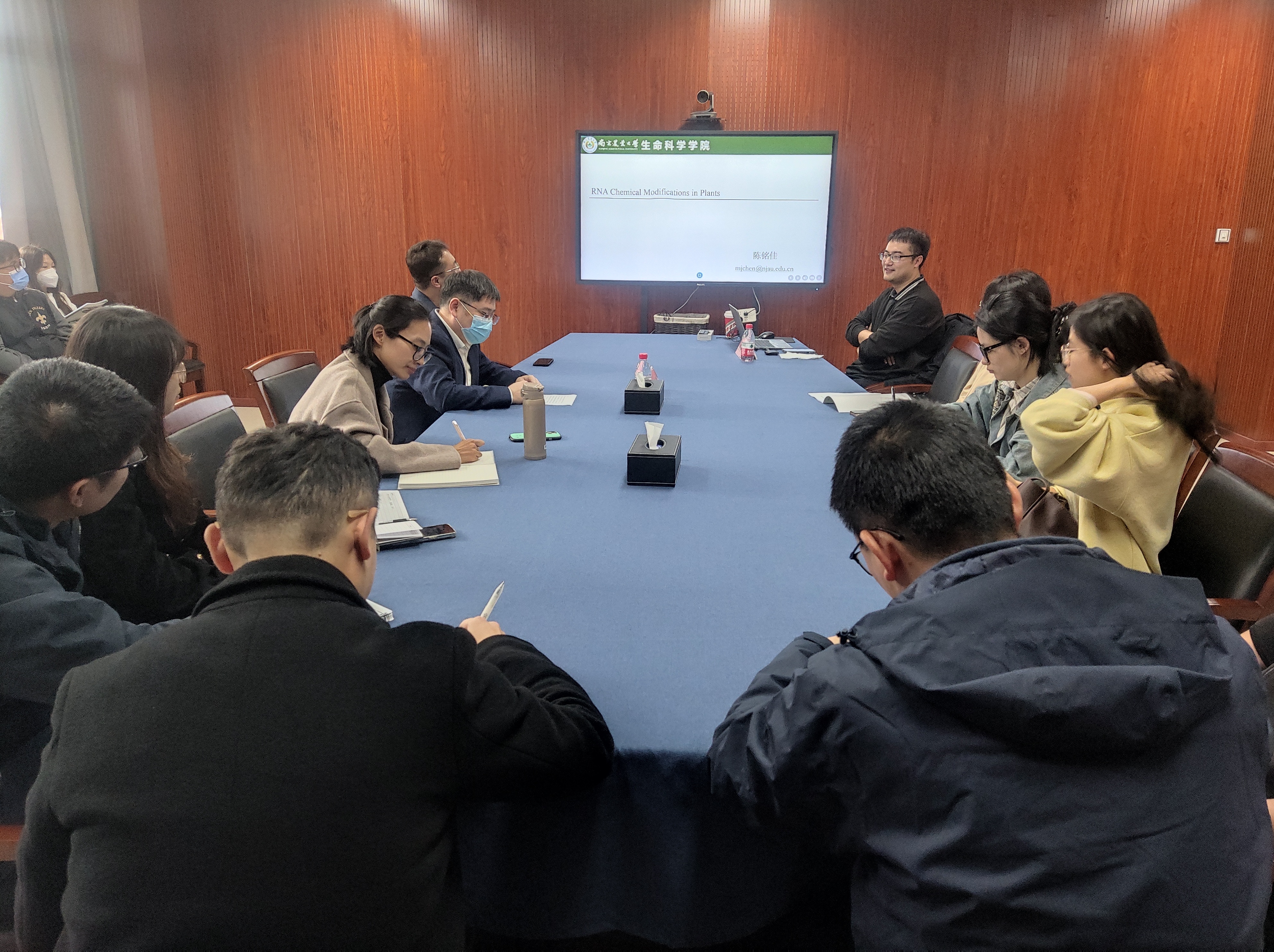 11月23日下午,我院在慎园15-313会议室举行了2023年第34期生科撷英讲坛,南京农业大学陈铭佳副教授,应邀来我院为师生们作了题为“RNA Chemical Modifications in Plants”的学术报告,报告会由薛大伟院长主持,植物学相关教师和研究生积极参加。
