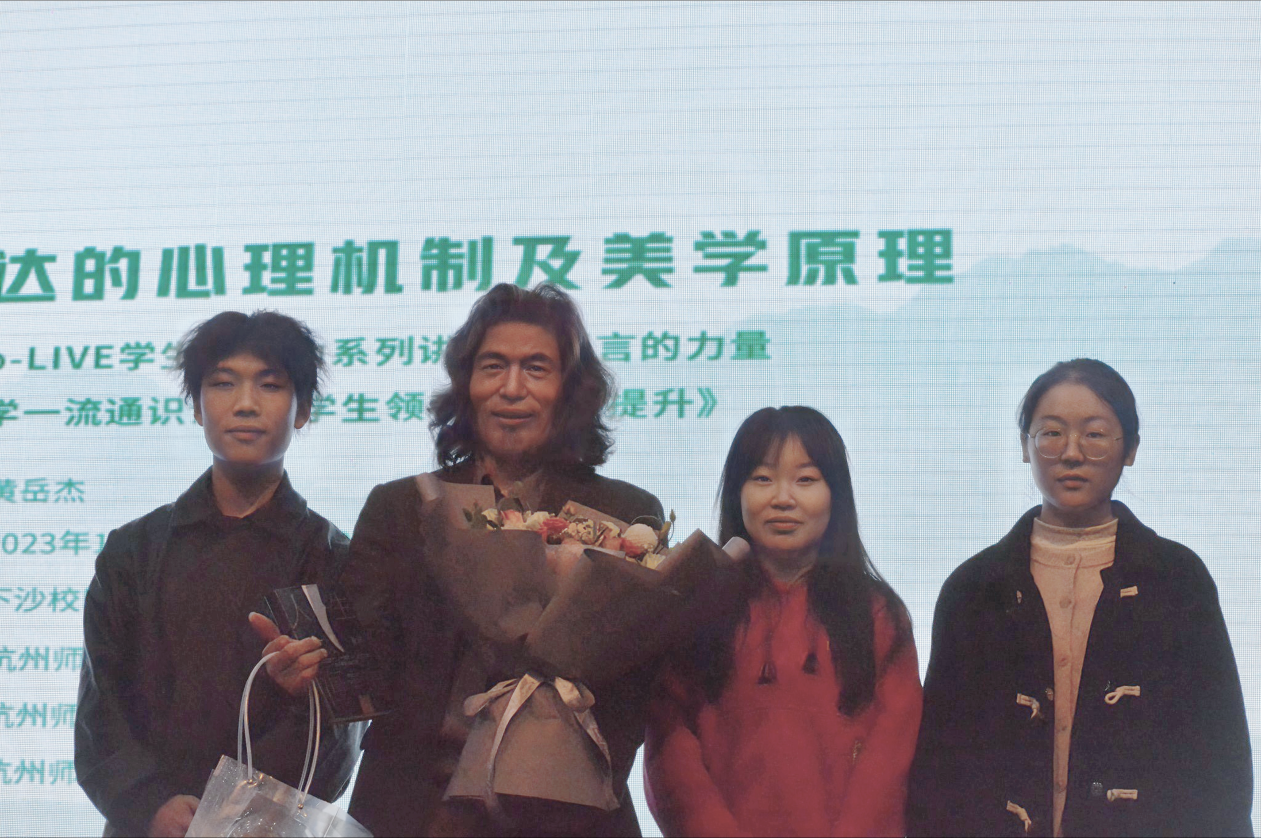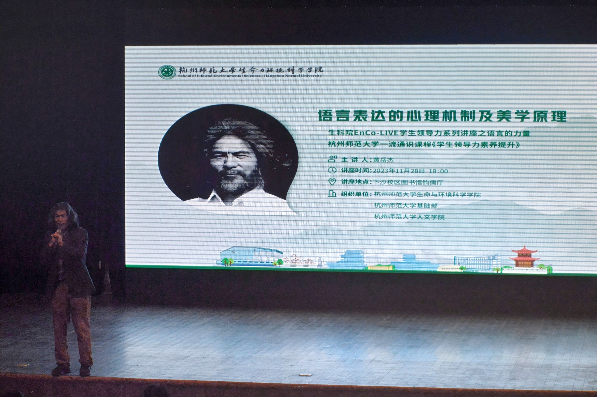 11月28日,无码影片 、基础部、人文学院联合举办EnCo-LIVE学生领导力系列专题讲座之语言的力量。中国戏剧家协会会员、杭州市戏剧家协会副主席、浙江省首届高校优秀教师、杭州市五一劳动奖章获得者、人文学院教授黄岳杰在下沙校区钧儒厅作“语言表达的心理机制及美学原理”主题讲座。
