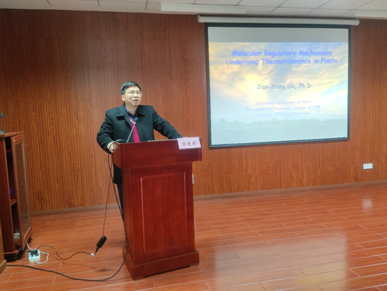 12月13日下午,我院在慎园15-309学术报告厅举行了2023年第36期生科撷英讲坛,国家优秀青年基金、国家杰出青年基金获得者、浙江大学求是特聘教授刘建祥应邀来我院为师生们作了题为“Molecular Regulatory Mechanism Underlying Thermotolerance in Plant”的学术报告,薛大伟院长主持报告会,植物学方向的教师和研究生踊跃参加。