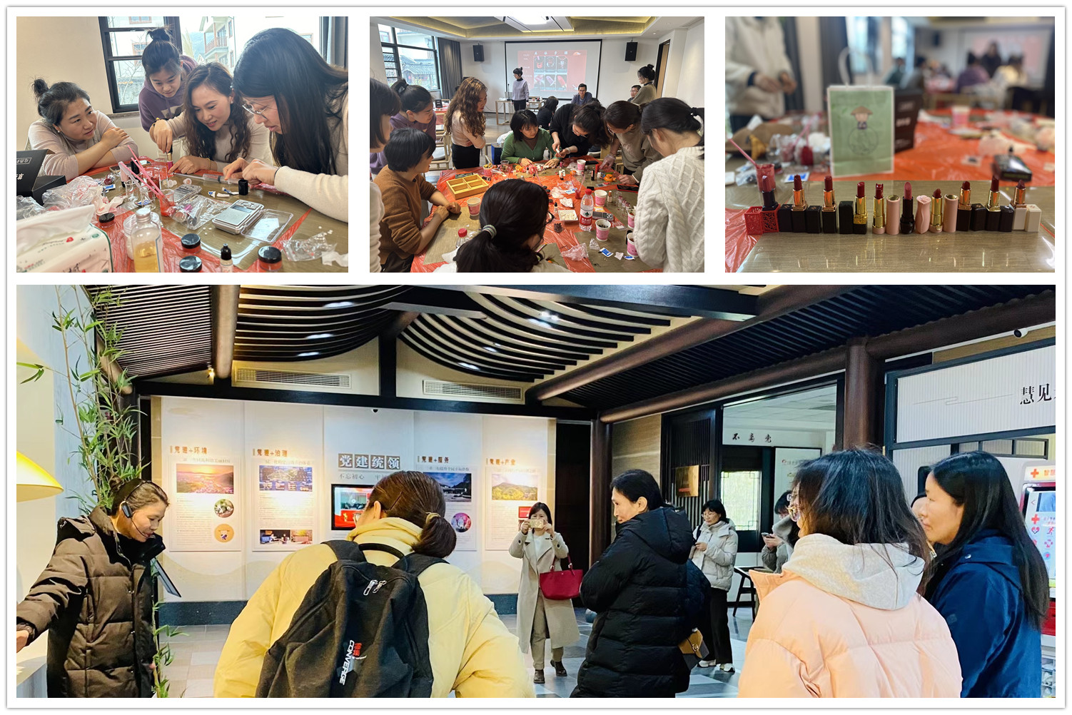 在这个美好的日子里,无码影片 的女教工们聚集在径山禅村的宴茶· 径山筑,共度愉快的时光。活动主要分为三个部分:1.参观游览。学院工会带领女老师们参观里洪老街茶筅非遗工坊;参观生物多样性展厅和文创展厅;参观禅茶新村美丽乡村建设;2 .品茗话发展。分享自己的工作和生活经验,享用径山茶餐;3 “我的色彩我做主——口红DIY”手工活动。大家围坐一起,手工制作一份自己专属的节日礼物。整个活动充满了欢乐和温馨的氛围,女教工们在这里感受到了工会组织的关怀和关爱。活动结束时,每位女教工满载而归,心中充满了对未来的希望和对工作的热情。