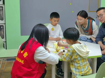 紧接着,小朋友们的动手环节正式开始,小朋友们在家长和志愿者的协助下,亲手制作了属于自己的彩绘团扇。每一个干花团扇都是独一无二的,都是他们对春天、对自然、对美好生活的诗意表达。