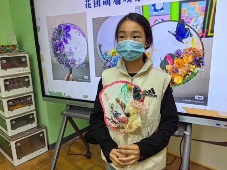 活动现场,讲解员为孩子们讲解如何将干花巧妙地编织在团扇上,再加上自己想要的绘画,引导他们发挥想象力,创造出属于自己的艺术作品。孩子们认真倾听、仔细观察,在心中构思着自己心中的团扇。