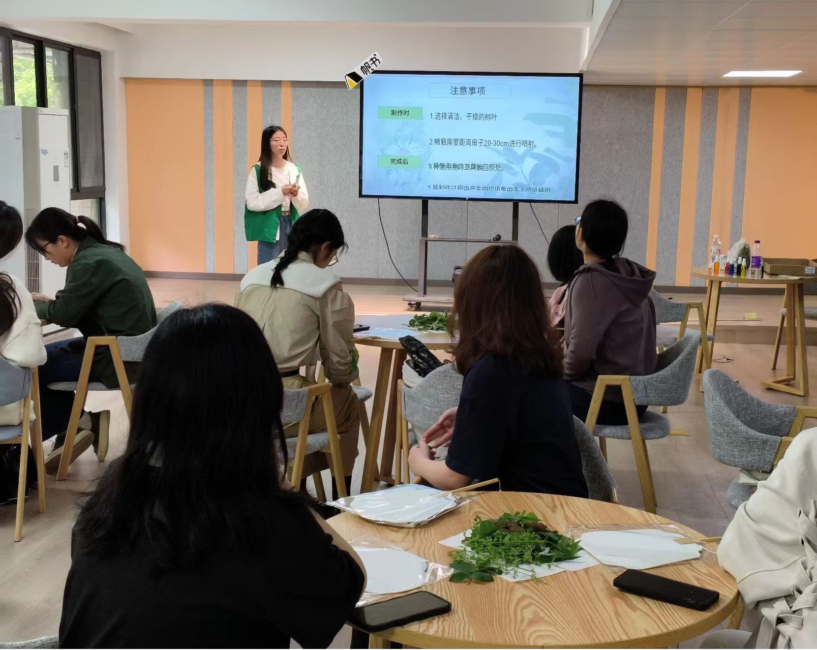 4月14日下午,“绿之翼”环保协会在下沙校区大学生成长指导中心面向协会会员开展了“滔源”讲堂系列活动——自然探索之“植物喷画”。