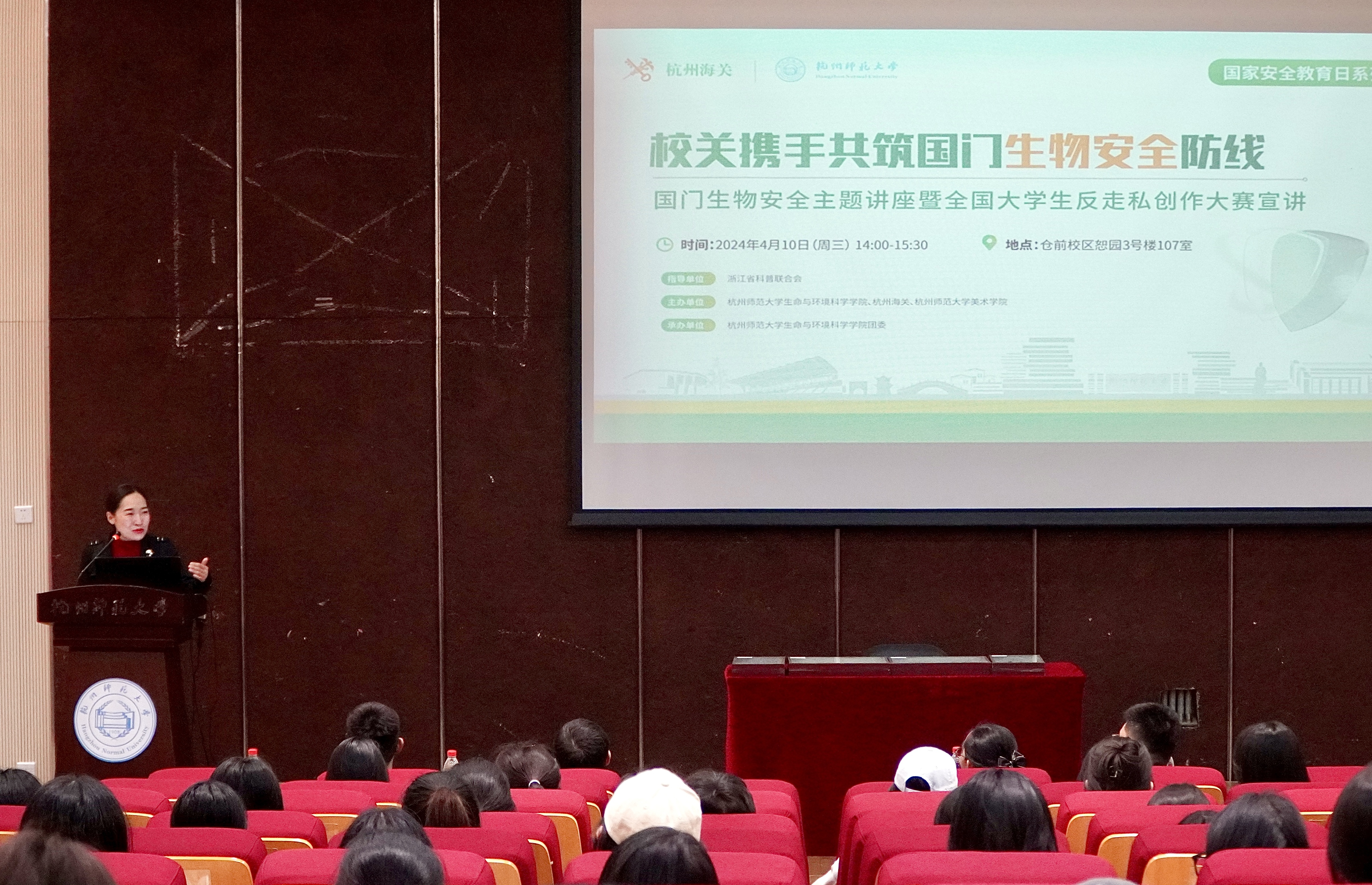 在习近平总书记创造性提出总体国家安全观10周年和第九个“4·15”全民国家安全教育日到来之际,由浙江省科普联合会指导,无码影片 、杭州海关等部门联合开展的“校关携手共筑国门安全防线”——生物安全主题宣传讲座在无码影片 仓前校区拉开帷幕。
