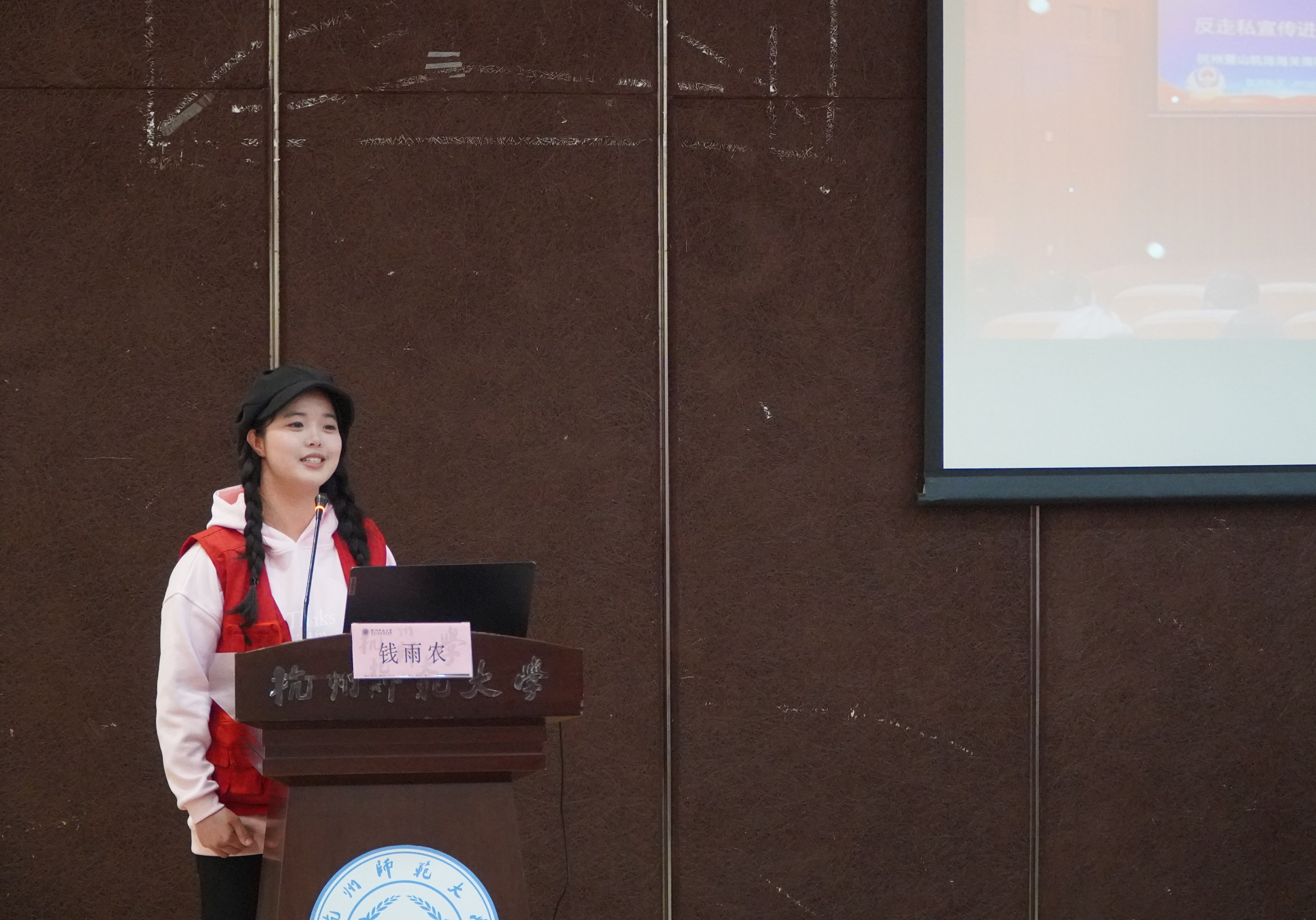 美术学院反走私宣传教育青年志愿服务团还进行了全国大学生反走私创作大赛(华东赛区)宣讲,并向同学们普及了反走私知识。