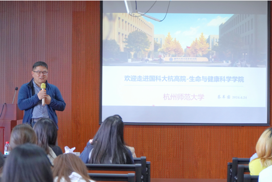 4月24日下午,国科大杭州高等研究院生命与健康科学学院副院长蔡车国一行莅临我院开展2025年研究生招生宣讲,学院党委副书记王倩参会并致欢迎词。