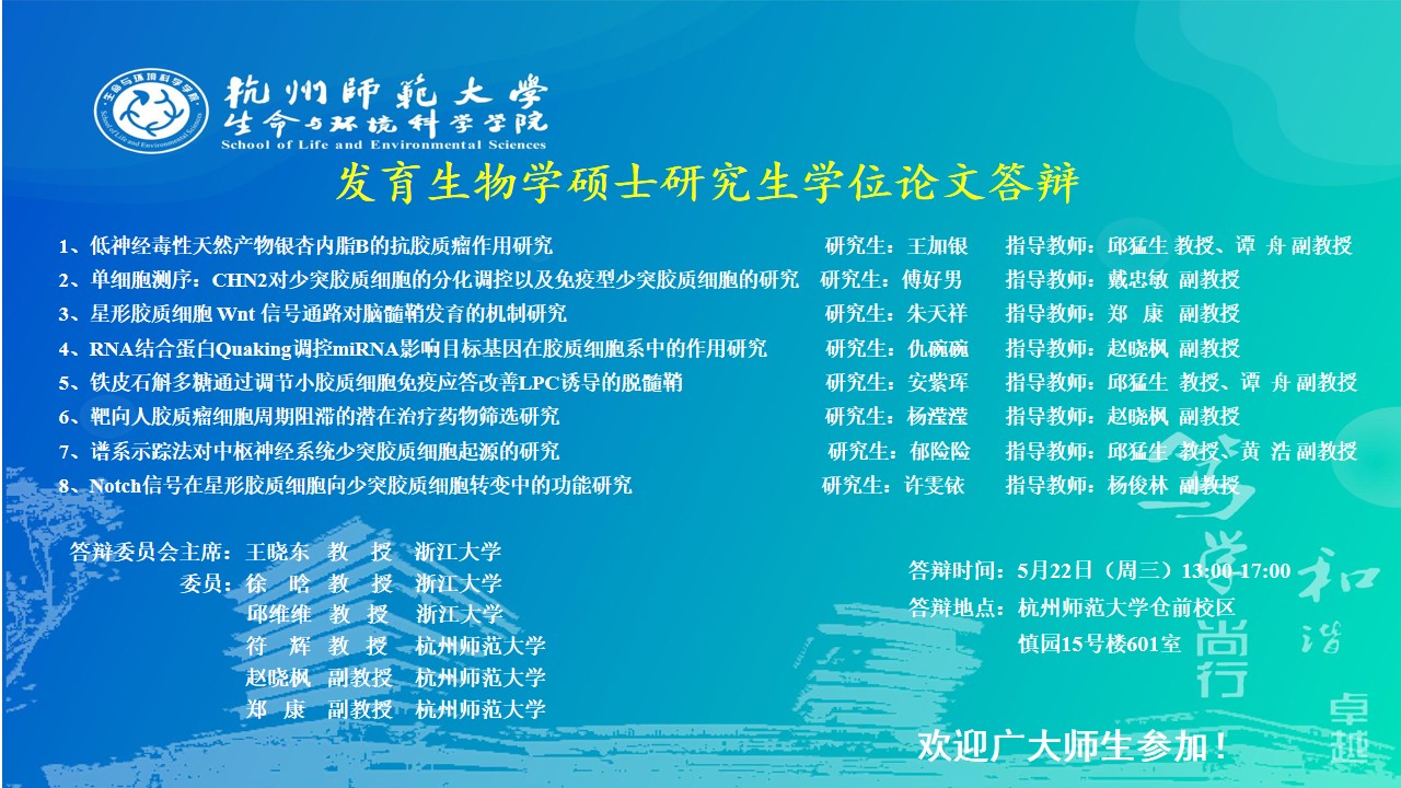 2024届发育生物学硕士研究生学位论文答辩海报 第一组
