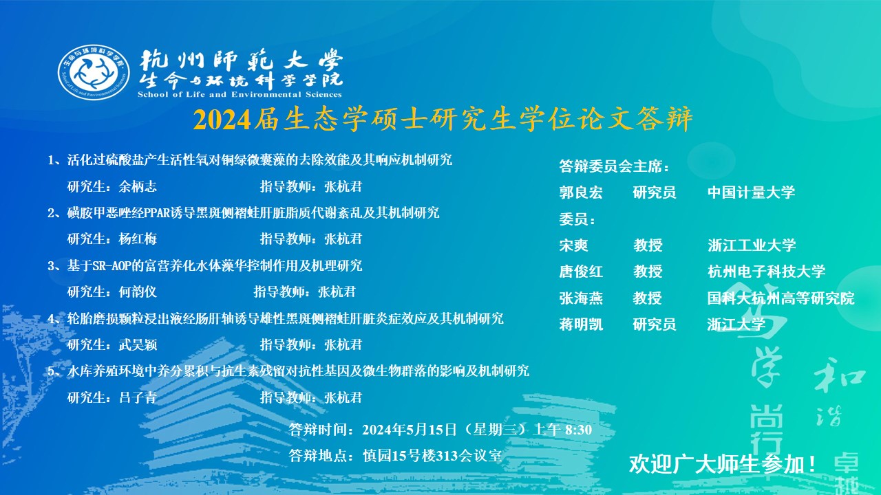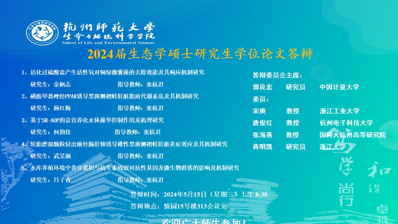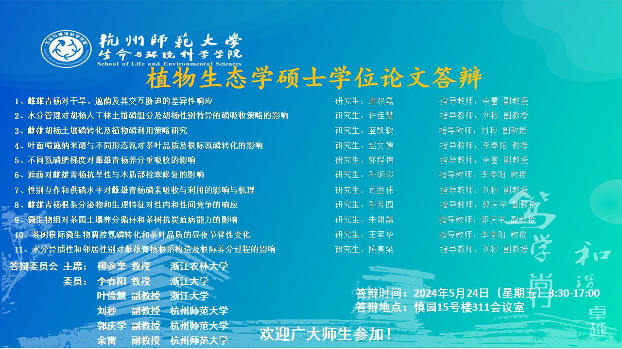 【硕士答辩】2024届生态学硕士研究生学位论文答辩安排