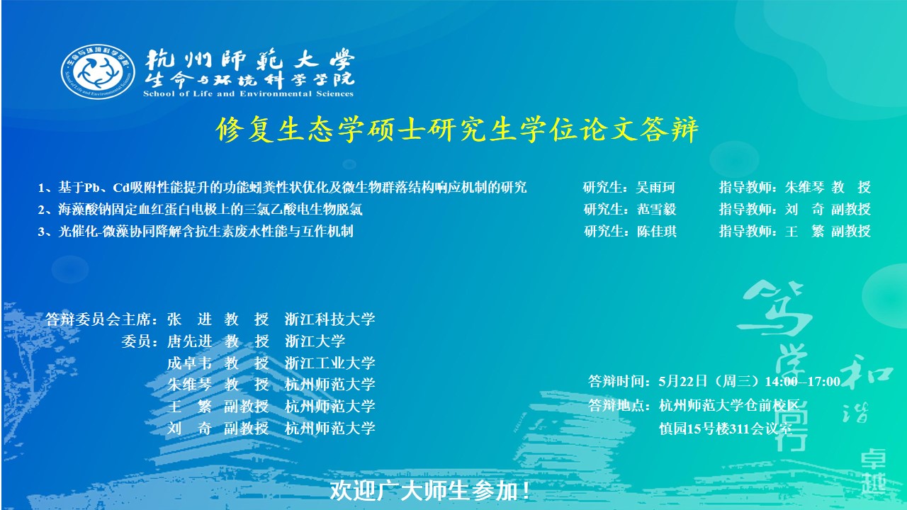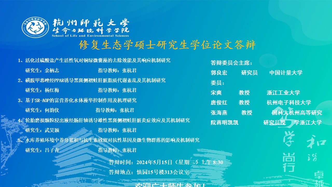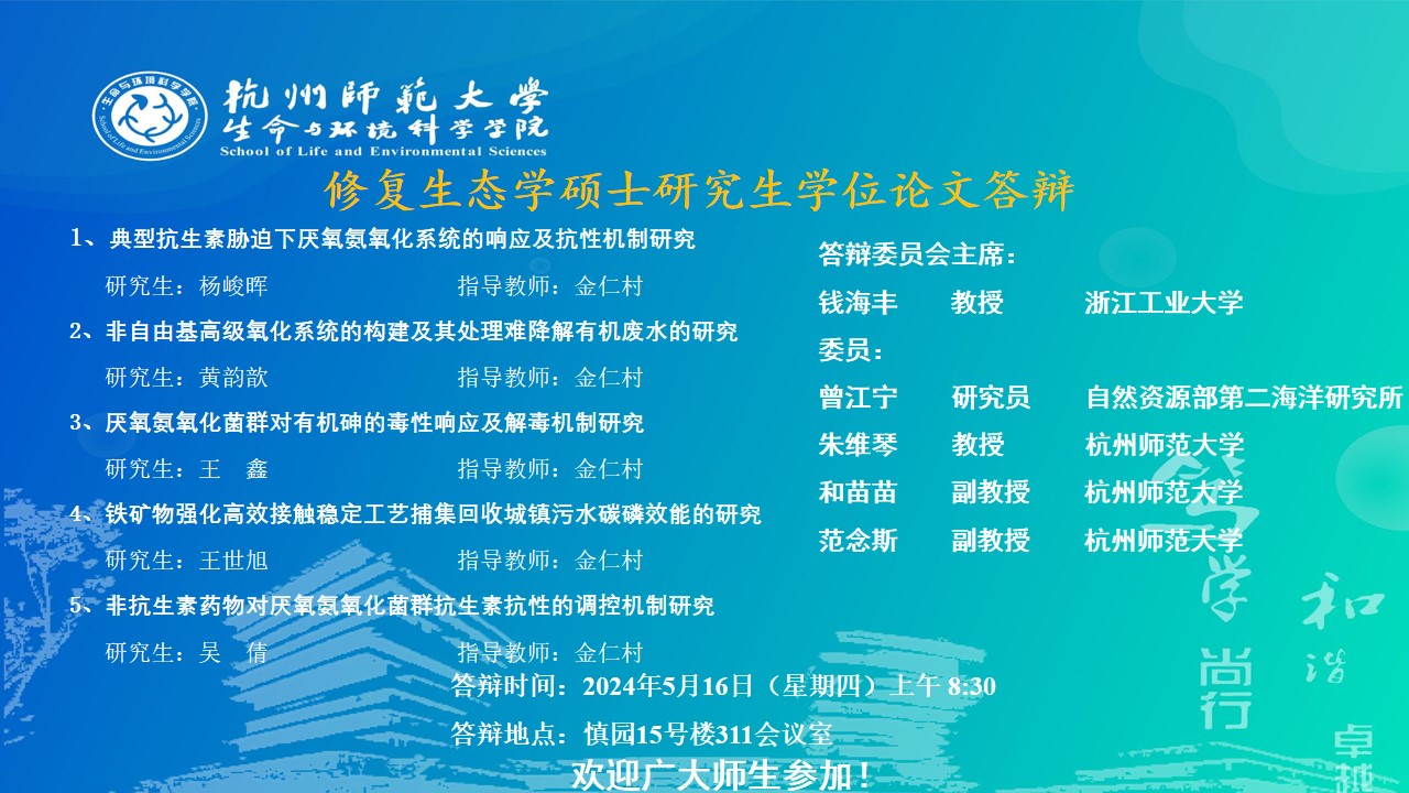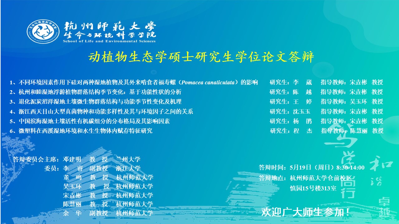 【硕士答辩】2024届生态学硕士研究生学位论文答辩安排