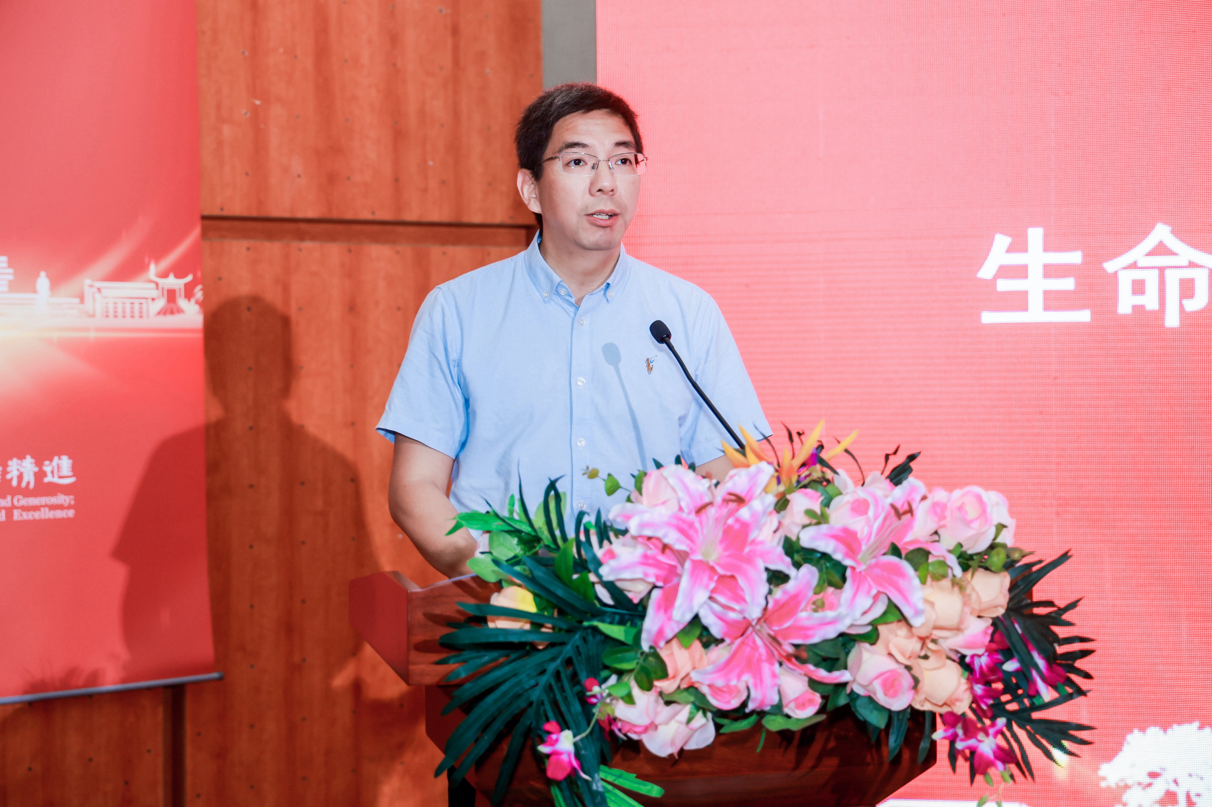 鲍学军作为校友代表讲话,他表示REACH (励志)奖学金作为校友捐赠奖学金,代表的是一种文化、一种精神力量和前进动力,是为了助力学生成长和学院发展而设立的。他充分肯定了获奖学生取得的成绩,感受到同学们眼里有光,心中有梦,脚下有路,希望全体生科学子要敢于梦想、敢于创新、敢于挑战,不要把自己局限于所能认知的这个世界范围,要勇敢追求别样的人生,为自己、为国家、为社会不断地奋斗。