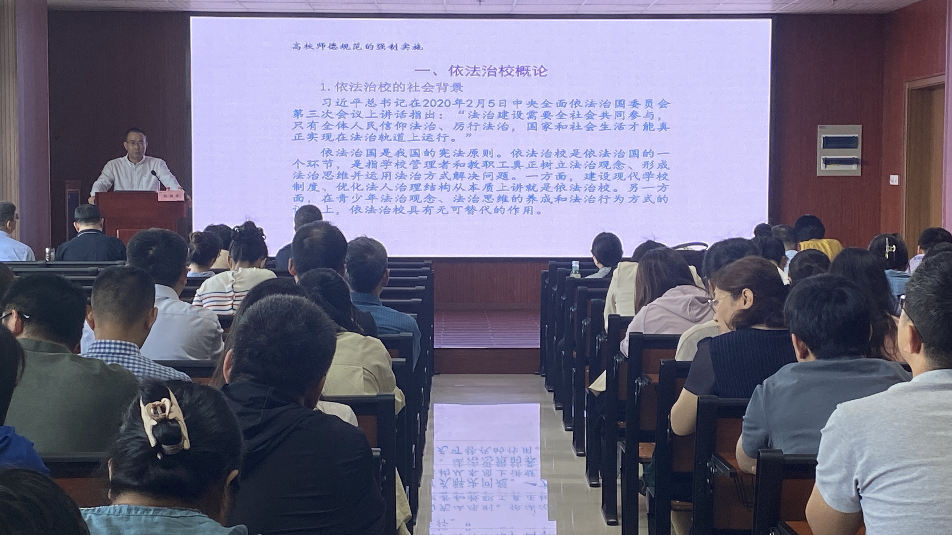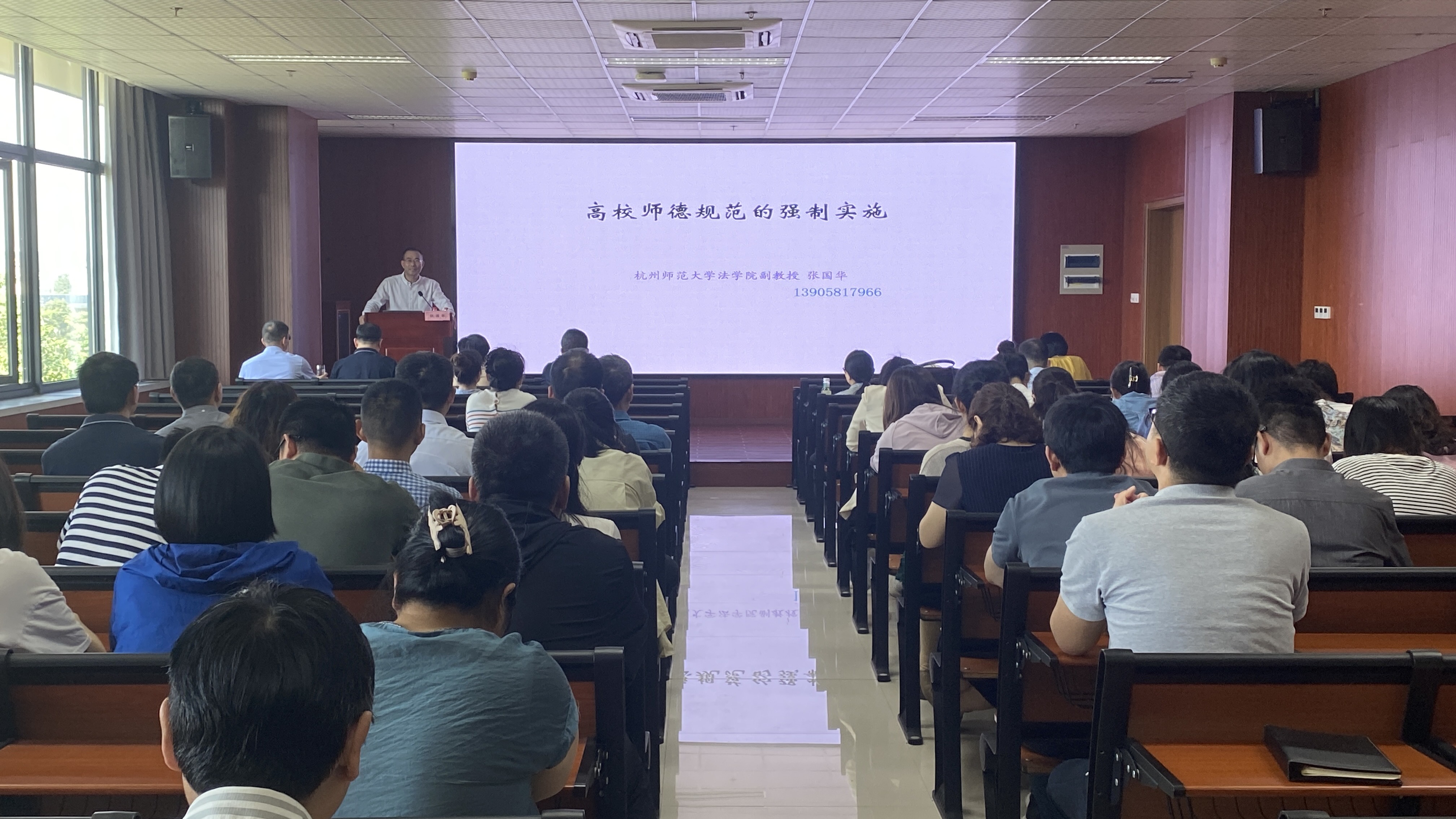5月29日下午,无码影片 召开教职工大会,进行高校师德规范集体培训,培训邀请无码影片 法学院副教授张国华进行题为《高校师德规范的强制实施》的主题讲座。
