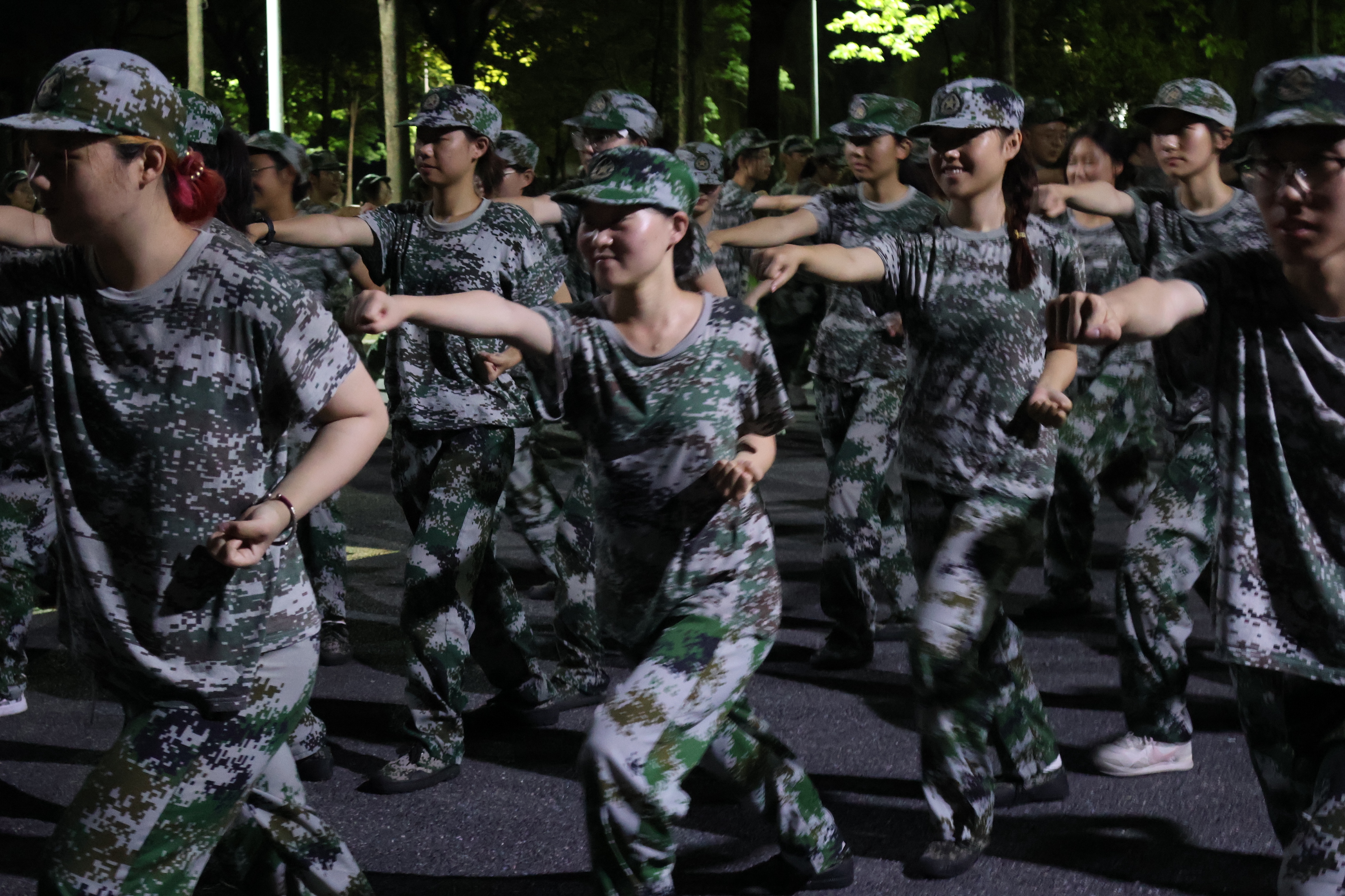 夜幕低垂,星辰点点,当大多数人都已沉浸在宁静的夜晚之时,我们却迎来了军训中别样的一课——学习军体拳。不同于白日的炽热与喧嚣,夜晚的军训场上多了一份静谧与神秘,但我们的热情却丝毫未减。