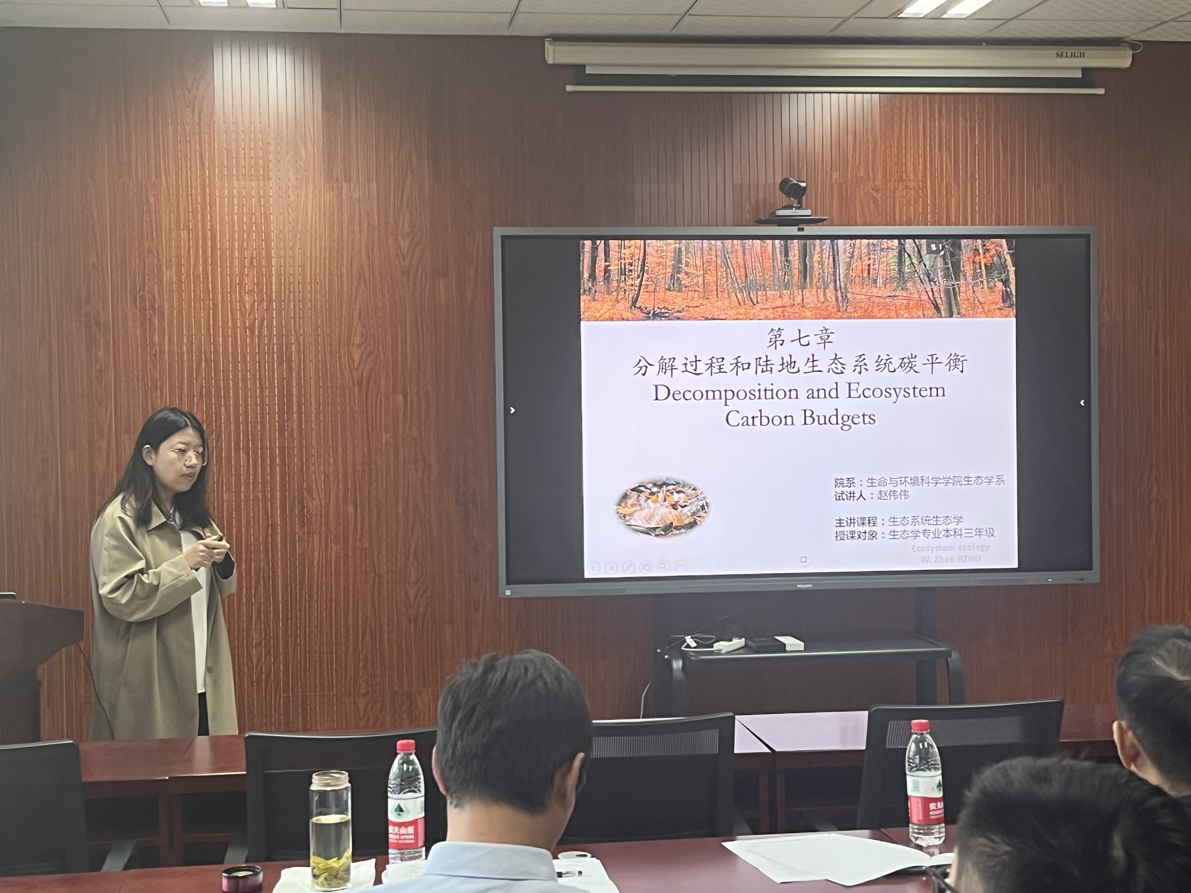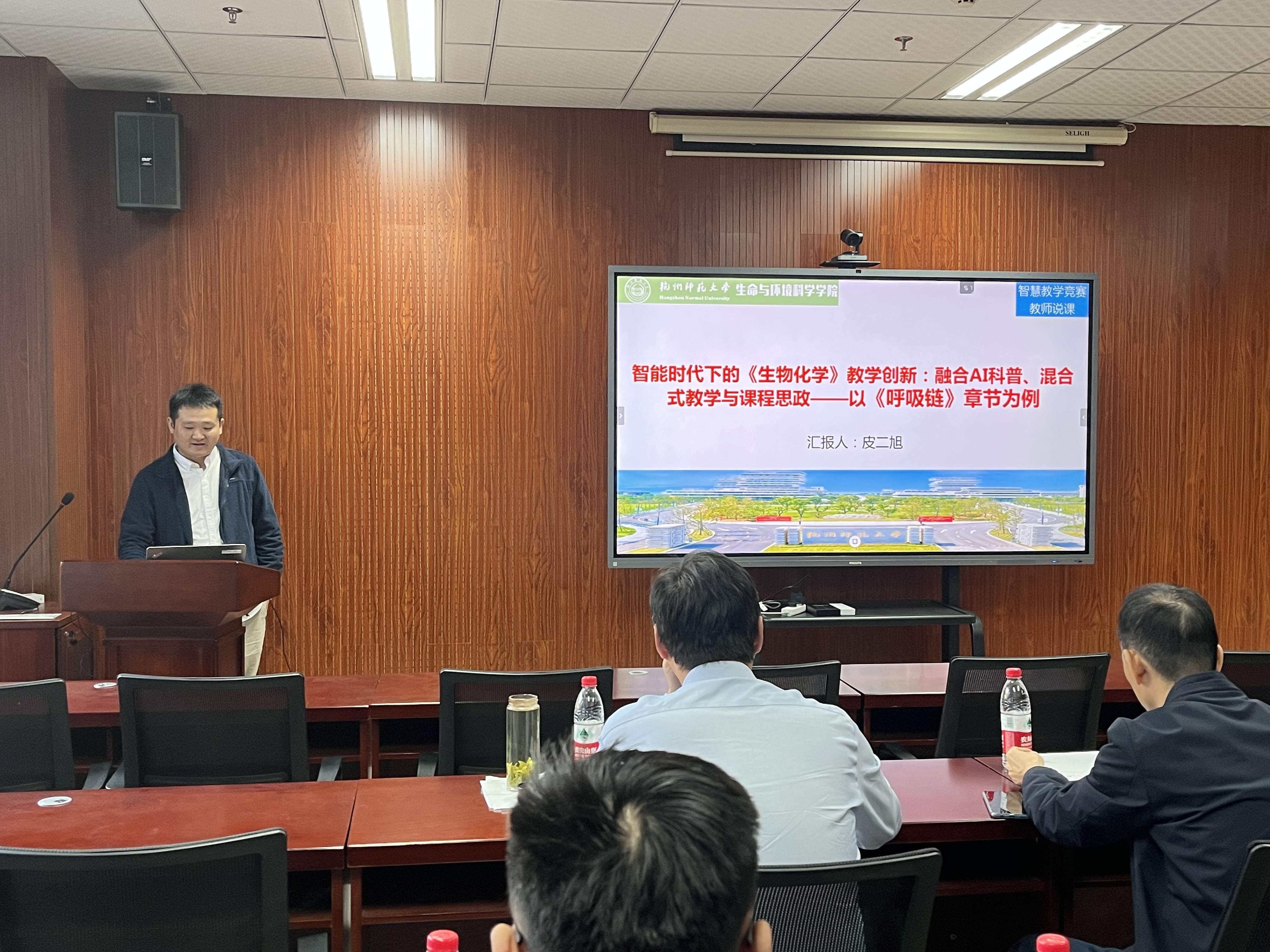 本次竞赛共开设教师智慧教学竞赛、教师教学创新、青年教师教学竞赛三个赛道。皮二旭老师的《生物化学》课程参与教师智慧教学竞赛的理工医科分赛道,提出了AI知识库和数字教师的构建,体现了教师在课堂教学过程中对于信息技术的掌握和应用,以及如何运用信息化手段进行师生互动。沈晨佳老师的《发育生物学》课程参与教师教学竞赛的新农科赛道,提出两个创新点,一是充分利用杭师大美丽校园的硬件环境,让学生在实践中验证课程所学知识点,二是实验课和理论课的配合,及时调整实验课的内容,做好理论实践的结合。青年教师教学竞赛主要考查青年教师(40周岁以下)的教学设计能力和教学业务水平(授课表现力),重点关注选取节段的高阶性、创新性和挑战度。我院共有五位青年教师参与了理科分赛道的课程节段试讲,评委老师在肯定青年教师的教学能力之外,从竞赛的节段选取、教学设计、语言组织、课件制作等方面提出了意见和指导。
