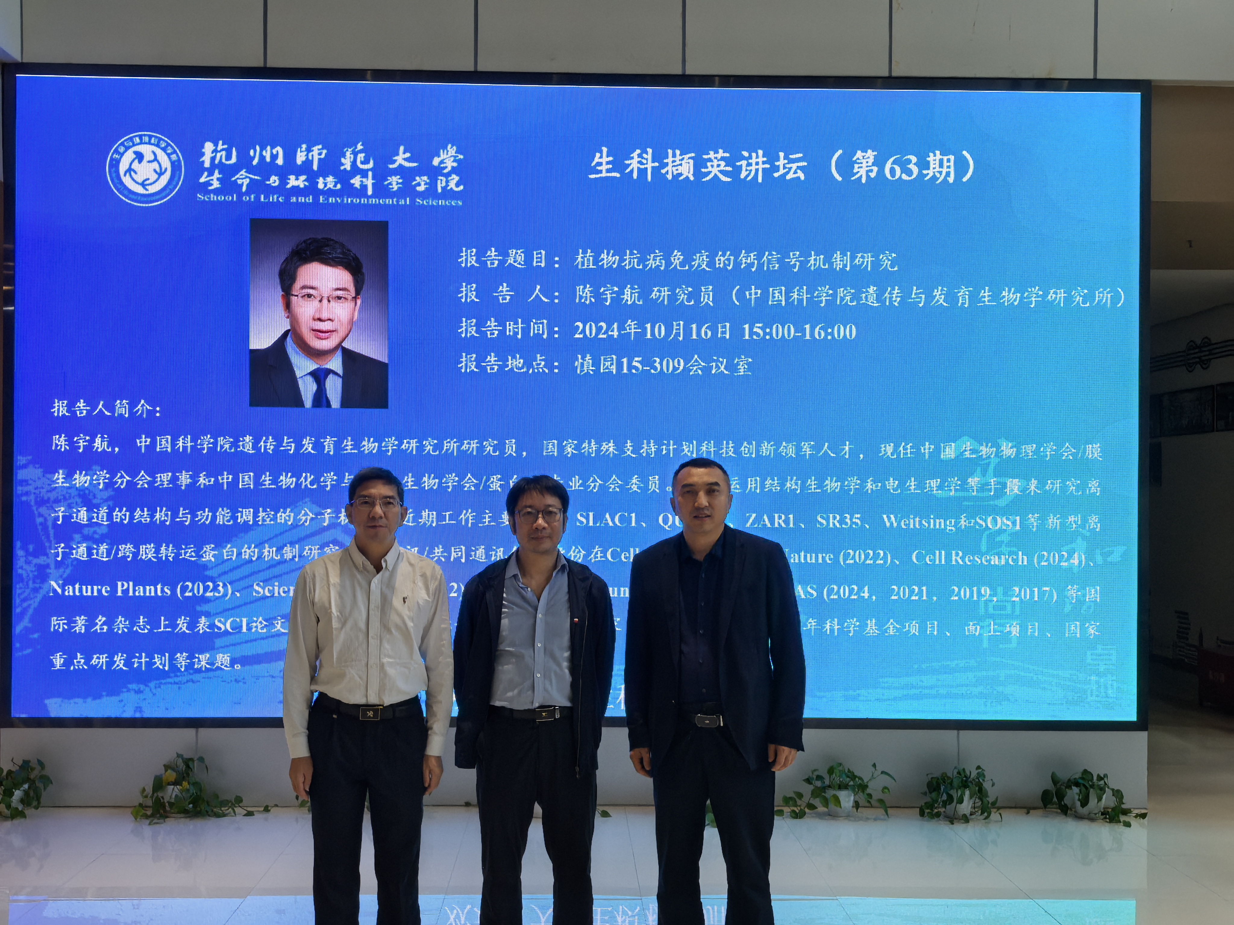 10月16日下午,我院在慎园15-309会议室举行了2024年第63期生科撷英讲坛,中国科学院遗传与发育生物学研究所陈宇航研究员应邀来我院为师生们作了题为“植物抗病免疫的钙信号机制研究”的学术报告,报告会由于彦春副院长主持,生物学相关教师和研究生积极参加。