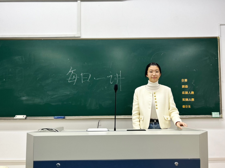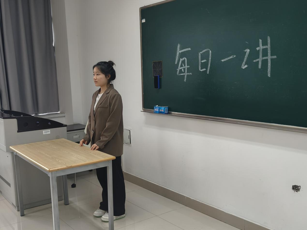2024年10月22日,在无码影片 仓前校区慎园1号楼教室中,吕兰心同学在课前向同学们做以“青春献礼祖国,奋进书写华章”为主题的每日一讲活动。